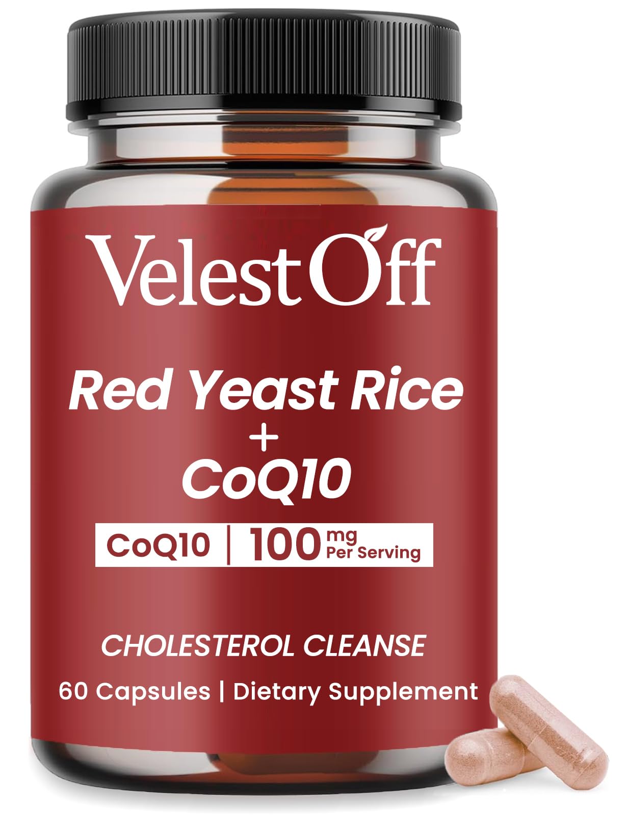 Velestoff Red Yeast Rice & Coq10 Cholesterol Cleanse - Red Yeast Rice Cholesterol Cleanse | Natural | Non-gmo | Vegan 60 Capsules