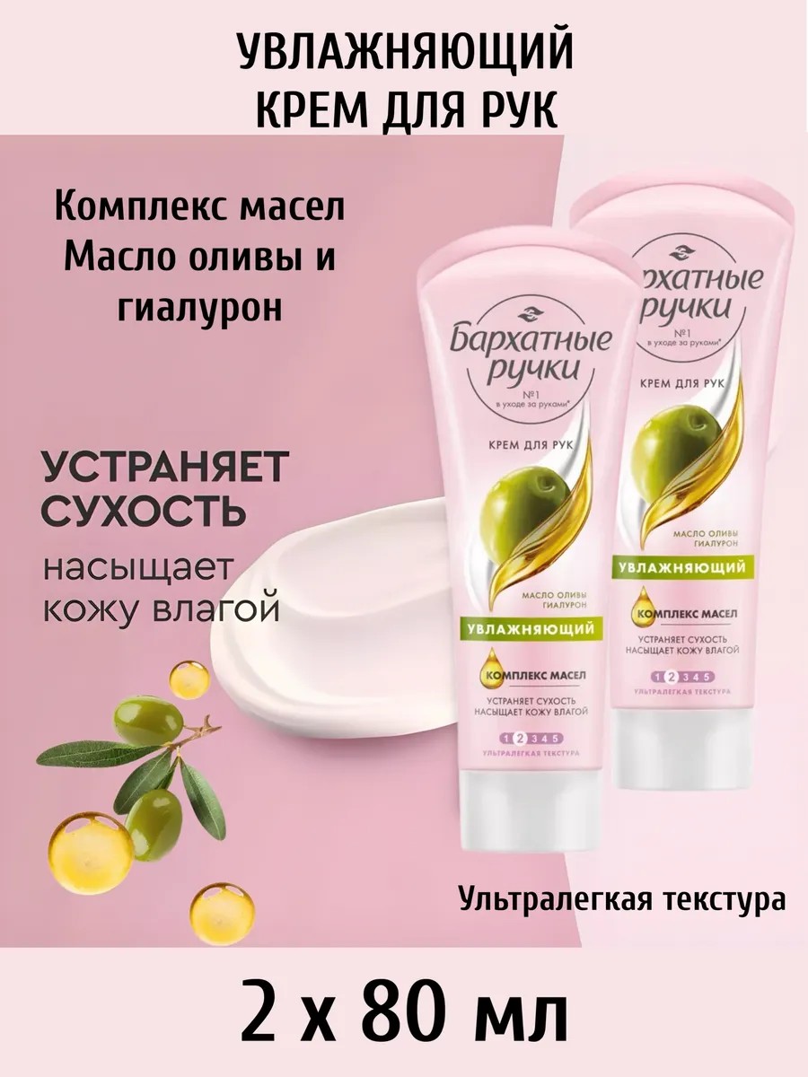 Крема Бархатный ручки Крем для рук Увлажняющий 80мл 2шт