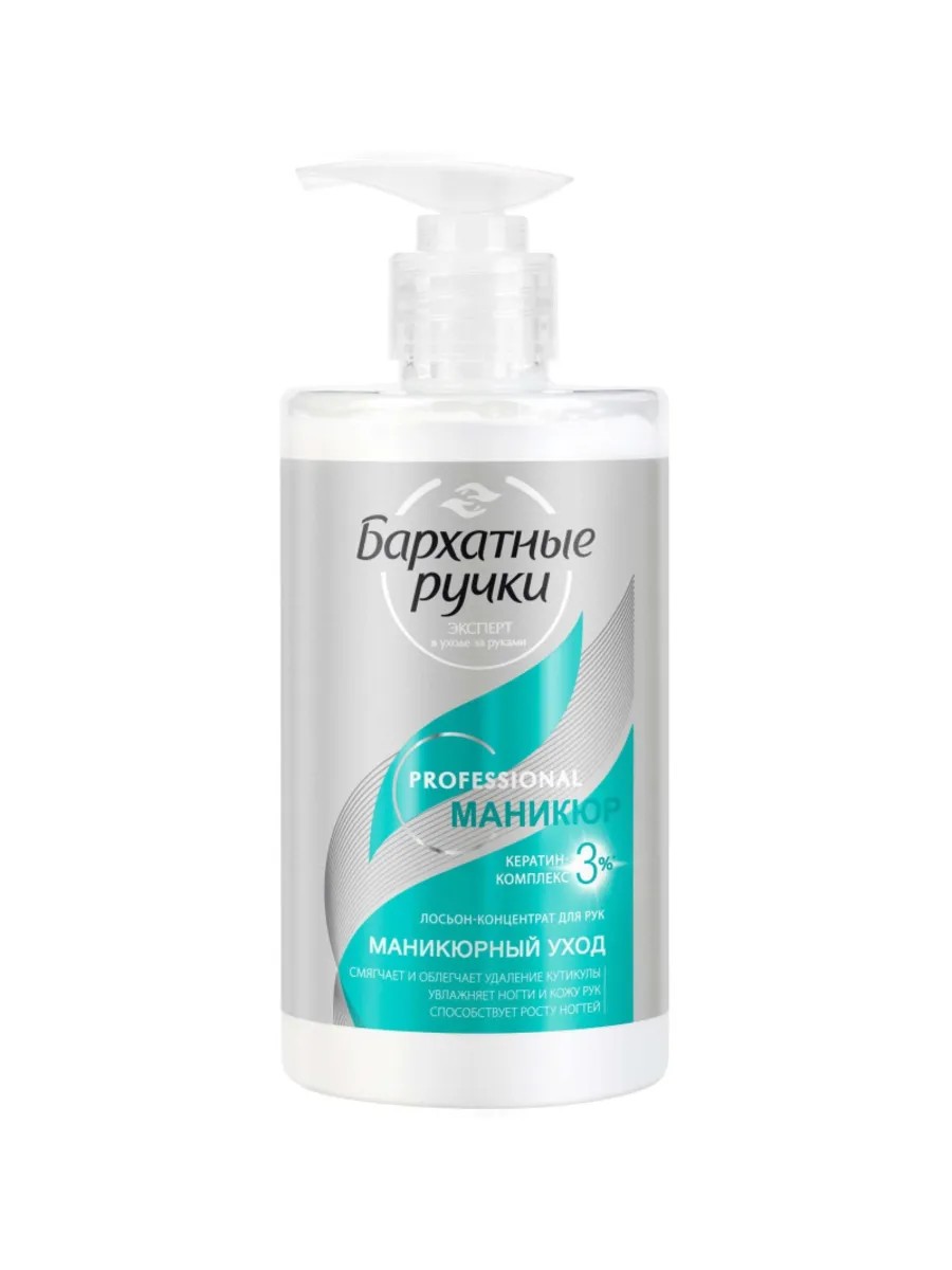 Крем для рук концентрат БАРХАТНЫЕ РУЧКИ Маникюр 430 мл с дозатором - идеальный выбор для полноценного ухода за руками и ногтями. Этот крем-концентрат, разработанный профессионалами, обеспечивает интенсивное увлажнение, питая кожу и ногтевую пластину. Формула, обогащенная натуральными маслами (миндальным и авокадо) и витаминами Е и F, мгновенно смягчает кутикулу, что облегчает ее удаление. Подходит для кожи, склонной к сухости и шелушению, а также для обладателей ломких и расслоившихся ногтей. Эмульсионный лосьон содержит ухаживающие добавки, такие как глицерин и аллантоин, что делает его незаменимым в уходе за руками. Для достижения лучших результатов наносите крем на чистую, сухую кожу легкими массирующими движениями. Восстановите красоту и здоровье своих рук с этим высококачественным продуктом.
