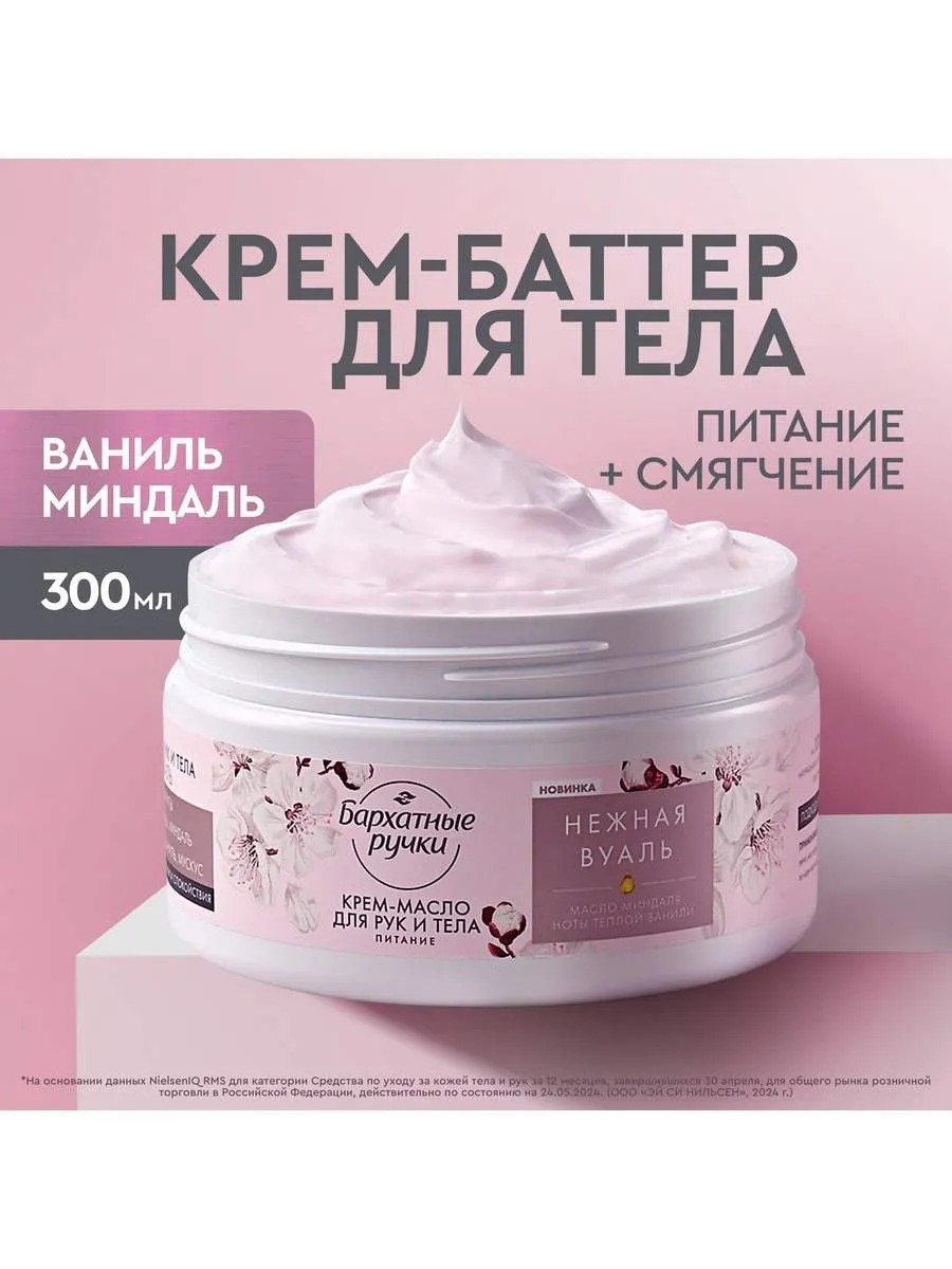 Бархатные Ручки Крем-масло для рук и тела Питание Нежная вуаль, парфюмированный 300мл.