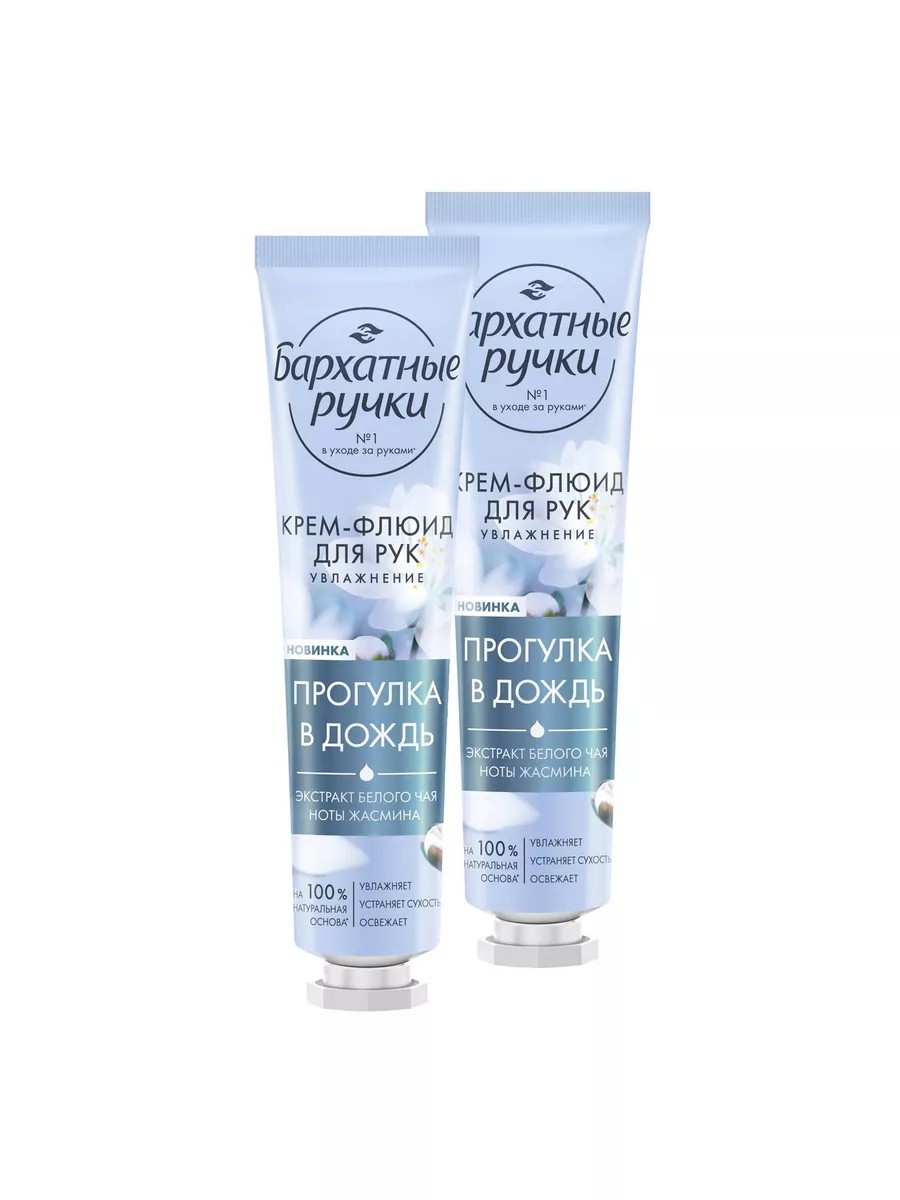 Для ухоженной и увлажненной кожи рук попробуйте новинку от эксперта №1 в уходе за руками – Бархатные ручки – парфюмированный крем-флюид Увлажнение Прогулка в дождь.