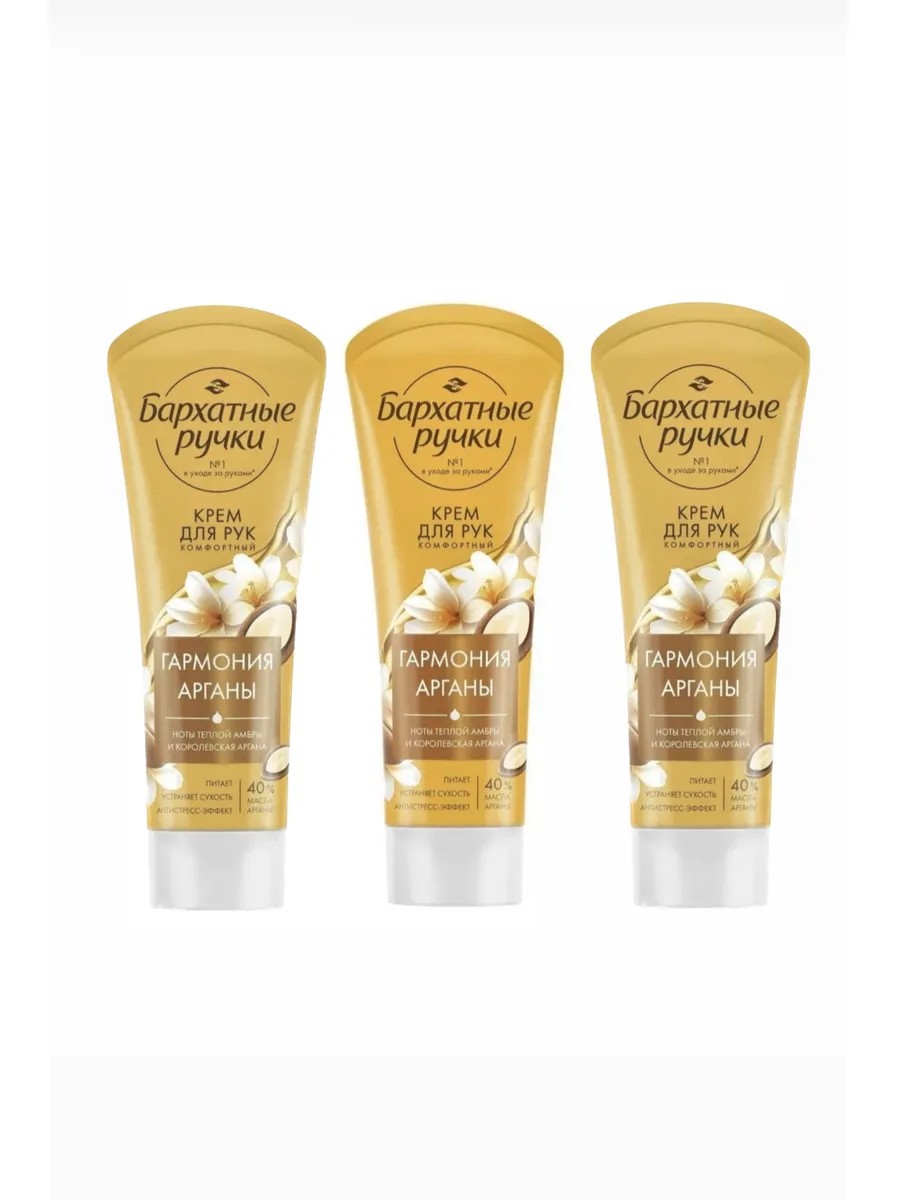 БАРХАТНЫЕ РУЧКИ Крем для рук с аргановым маслом, 80 мл. 3 штуки