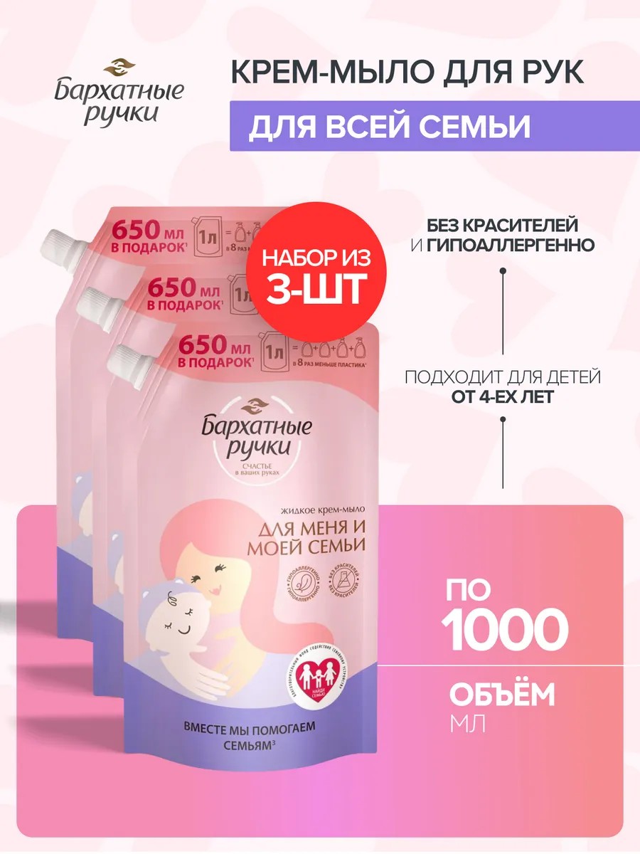 БАРХАТНЫЕ РУЧКИ Жидкое крем - мыло для рук. Для меня и семьи. 3х1000 мл
