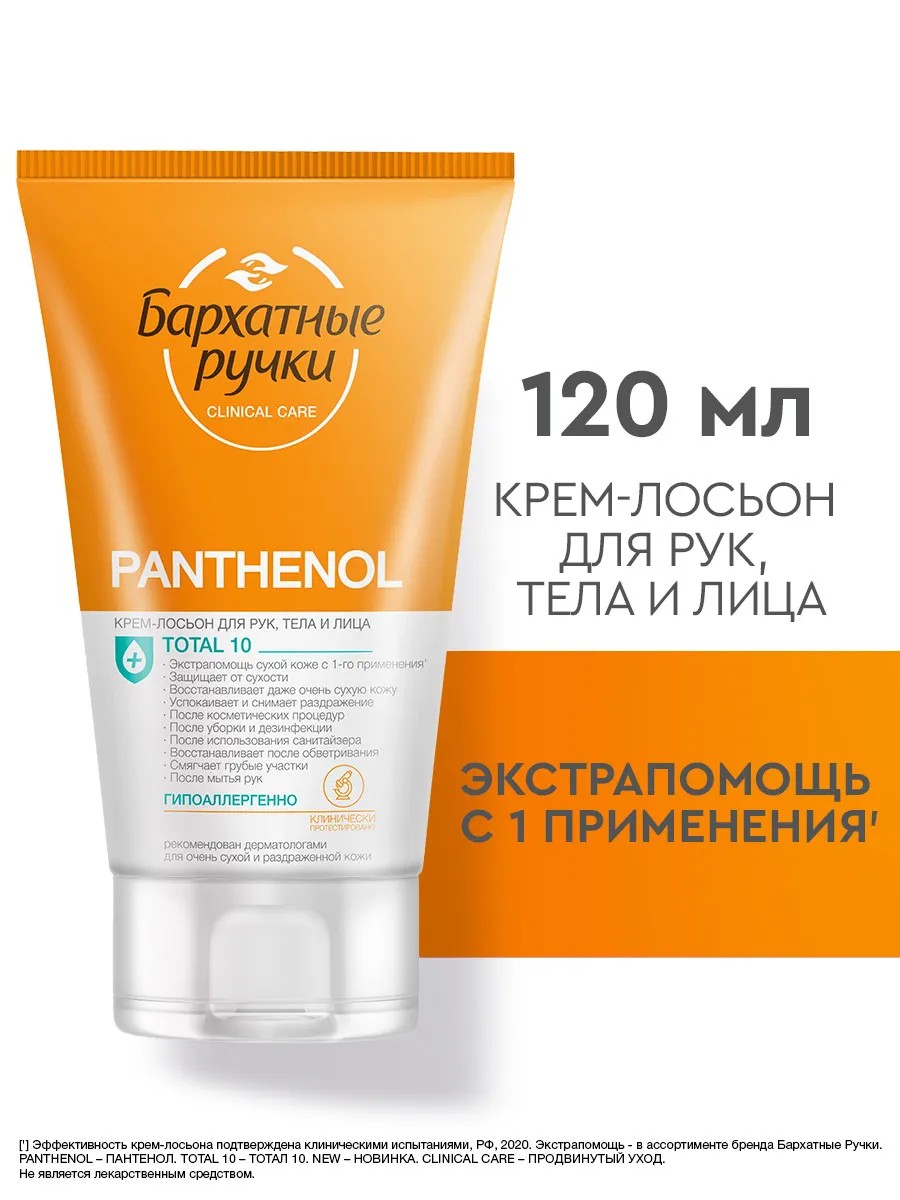 Ищете универсальное средство для ухода за раздраженной и сухой кожей с антибактериальным эффектом? Крем-лосьон для рук, лица и тела Бархатные ручки обезопасит от негативного воздействия окружающей среды и окажет экстра-помощь с первого применения.