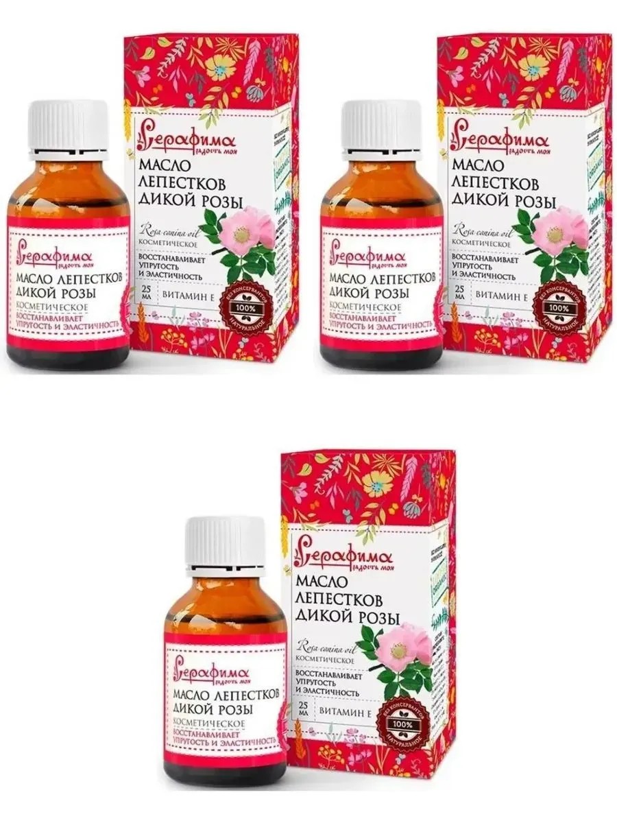 Seraphim Wild Rose Petal Cosmetic Oil - an oily texture with a floral aroma. Wild rose oil (rosehip) is a concentrate of beneficial substances, a source of vitamins A, E, C and trace elements. Due to its rich composition, the oil is called "liquid sun." It contains a high percentage of saturated and unsaturated fatty acids (gamma and omega): linoleic, linolenic, oleic, stearic, palmitic, etc. Natural wild rose petal oil intensively restores skin firmness and elasticity. It normalizes metabolic processes in skin cells, stimulates collagen synthesis, smoothes wrinkles, and helps protect against ultraviolet rays, which are the main cause of premature skin aging. The oil also reduces skin pigmentation. Result: Restoration of skin firmness and elasticity. In its pure form: apply 2-3 drops of oil to dry, clean skin.