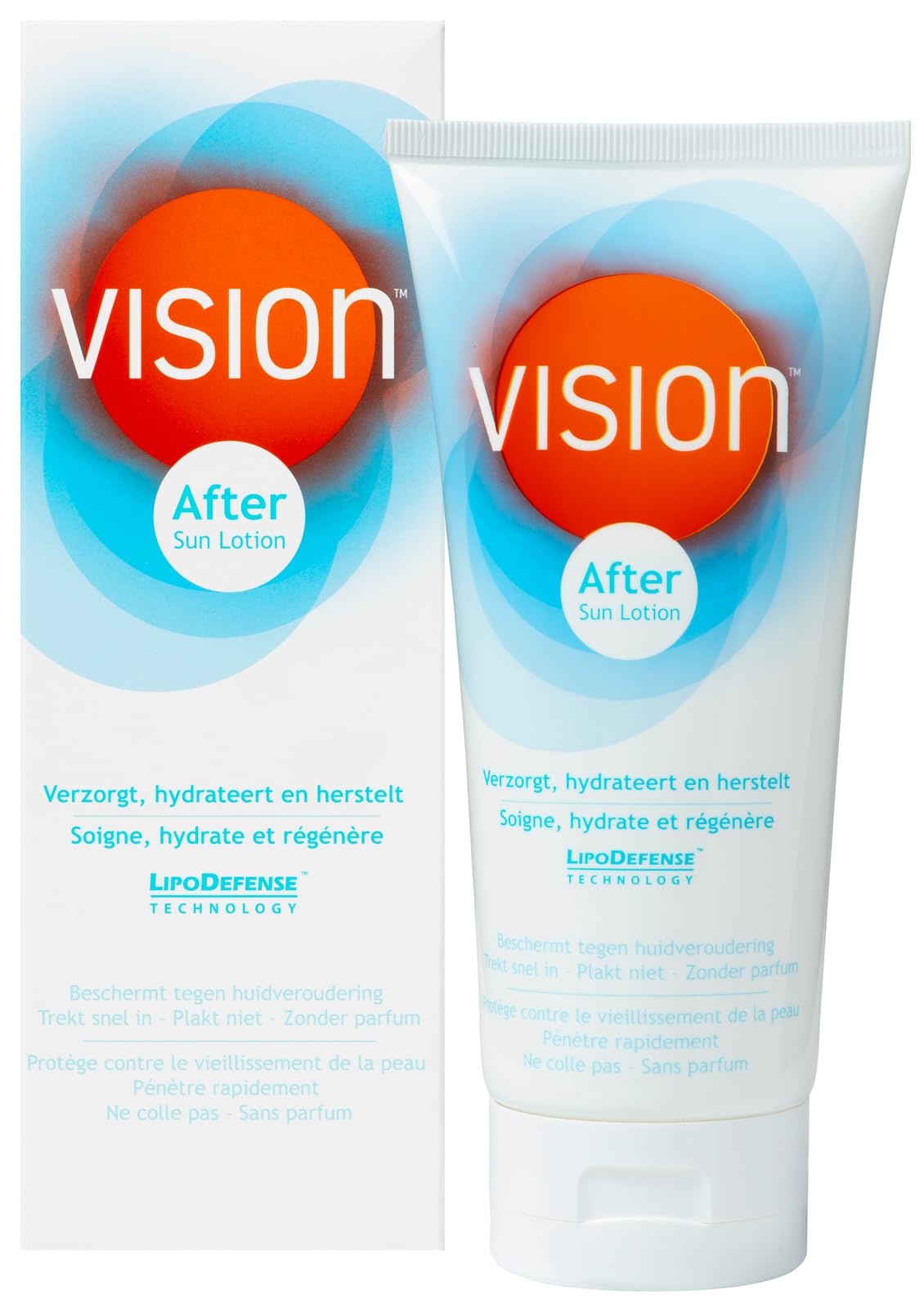 Vision After Sun lotion Nourishes, hydrates and repairs the skin after sunbathing. Nourishes and hydrates Restores the skin With vitamin E and aloe vera Even after sunbathing you can count on the nourishing and protective effect of Vision. With Vision After Sun Lotion. After a day in the sun, the active liposomes, vitamin E and aloe vera ensure that your skin can recover quickly. Vision After Sun Lotion is user-friendly: it applies easily and quickly, is not greasy and does not stick to clothing. Ideal for you and your family. - Cares for, hydrates and repairs the skin after sunbathing - With vitamin E and aloe vera - Absorbs quickly and does not stick - For a long-lasting tan.1 Stuk. Inhoud: 200 ml. Vision After Sun lotion.Vision Aftersun, 200 ml Vision After Sun lotion Verzorgt, hydrateert en herstelt de huid na het zonnen. Verzorgt en hydrateert Herstelt de huid Met vitamine E en aloë vera Ook ná het zonnen kun je rekenen op de verzorgende en beschermende werking van Vision. Met Vision After Sun Lotion. Na een dag in de zon zorgen de actieve liposomen, vitamine E en aloë vera ervoor dat je huid zich weer snel kan herstellen. Vision After Sun Lotion is gebruiksvriendelijk: het smeert gemakkelijk en snel in, is niet vet en plakt niet aan de kleding. Ideaal voor jou en je gezin. - Verzorgt, hydrateert en herstelt de huid na het zonnen - Met vitamine E en aloë vera - Trekt snel in en plakt niet - Voor een langblijvende bruine kleur.1 Stuk. Inhoud: 200 ml. Vision After Sun lotion.