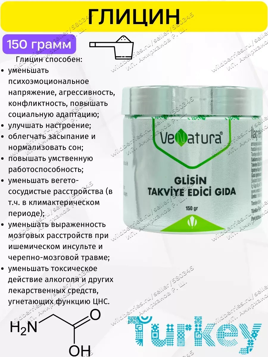 | Вид пищевой добавки | Глицин порошок Турция; Глицин 1000мг; VeNatura Glisin Takviye Edici Gıda 150 gr |