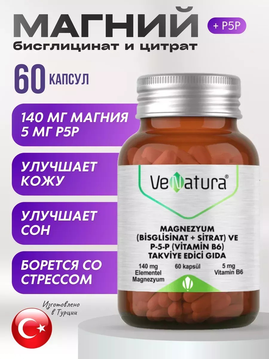 | Trade name | Biologically active food supplement "VeNatura Magnesium (Bisglycinate + Citrate) and P-5-P (Vitamin B6)/ВеНатура Magnesium (Bisglycinate + Citrate) and P-5-P (Vitamin B6) capsules |
