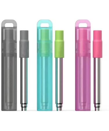 VENEKA 3PCS Reusable Straw Travel Telescoping Straw Collapsible Straw Travel Work Out Stainless Steel Key Chain