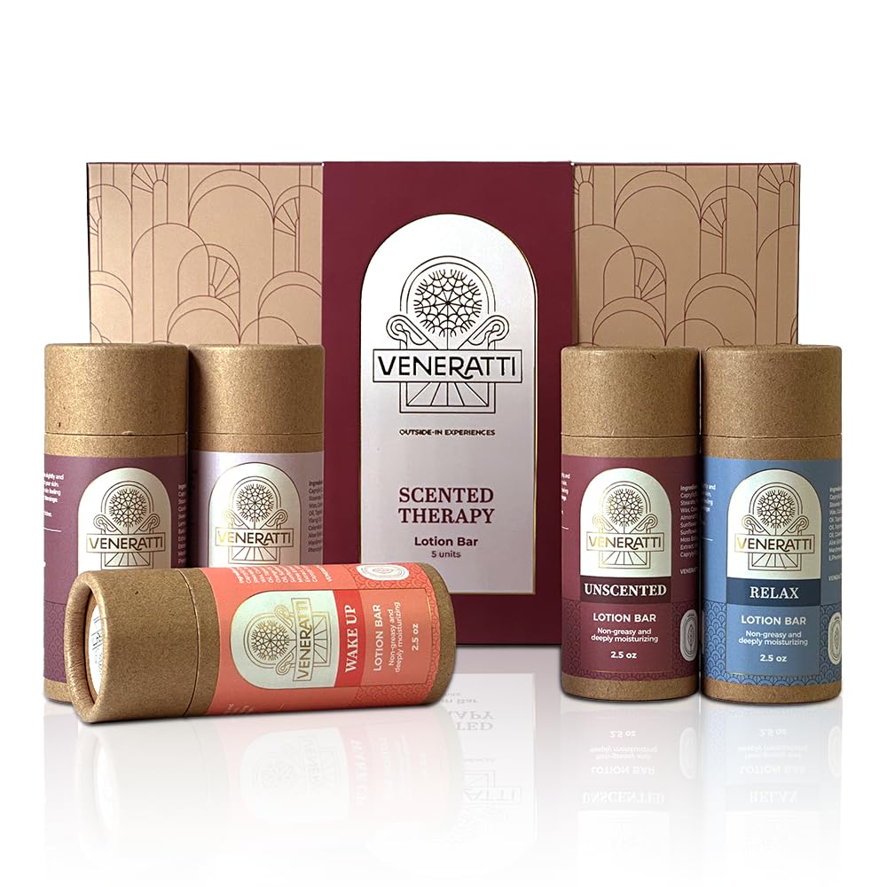 VENERATTI Lotion Bar - Vegan Made in the US Eco Friendly Stick - Quick Absorption Non-Sticky - Natural Ingredients Solid Body Lotion for Women Dry Skin - Travel Body Lotion (Gift Box 5 Units)