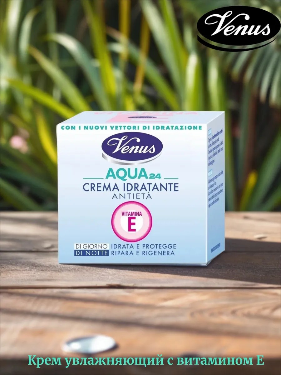 The Italian brand Venus offers AQUA 24, a moisturizing anti-aging cream with vitamin E. Its formula includes ingredients that actively nourish the epidermis and penetrate into the deeper layers of the skin.