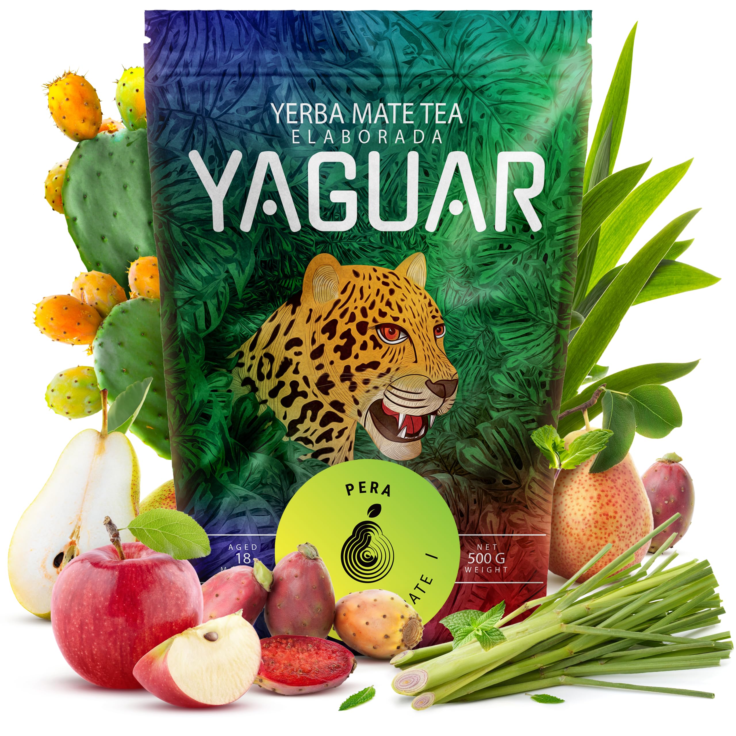 Yaguar Pera. An excellent composition of yerba mate with pear flavor! Yaguar Pera is the answer to the expectations of many fruit-flavored yerba mate lovers. The pear-flavored composition attracts with its delicious, balanced aroma. The mild aroma will appeal to both advanced and novice Yerba Mate drinkers. At the same time, the natural caffeine content in the blend remains consistently high. The stimulating effect will be really excellent! Yaguar is a long-matured yerba mate in a classic style. It is distinguished by its slightly bitter taste and excellent stimulating effect. Thanks to the perfectly optimized qualities of the dried mate, it combines perfectly with natural additives. No wonder the brand offers more than a dozen different flavor variations based on herbs and fruit. The mild taste qualities of each of them make Yerba Mate attractive to both beginners and advanced users. Come face to face with Yaguar and discover the true treasure of the South American tropics! Yerba mate. The perfect alternative to coffee and energy drinks! Yerba mate originates from the fertile border areas of Brazil, Argentina and Paraguay. In many Latin American countries it is more popular than coffee and is considered an integral part of the local culture. The infusions, rich in natural caffeine, vitamins, minerals and antioxidants, provide perfect energy. In addition, they can have a positive effect on the functioning of the body. How does Yerba Mate work for you? Try it and find out! SAFETY WARNING The product may contain peanuts, tree nuts and gluten-containing grains.Yaguar Pera 0.5 kg Braziliaanse yerba mate met perensmaak 500 g Milde fruitsmaak Veel natuurlijke cafeïne Traditionele productiemethoden Yaguar Pera. Een uitstekende samenstelling van yerba mate met perensmaak! Yaguar Pera is het antwoord op de verwachtingen van veel liefhebbers van yerba mate met fruitsmaak. De samenstelling met perensmaak trekt aan met zijn heerlijke, evenwichtige aroma. Het milde aroma zal zowel gevorderde als beginnende Yerba Mate drinkers aanspreken. Tegelijkertijd blijft het natuurlijke cafeïnegehalte in de melange constant hoog. Het stimulerende effect zal echt uitstekend zijn! Yaguar is een lang gerijpte yerba mate in een klassieke stijl. Het onderscheidt zich door zijn licht bittere smaak en uitstekende stimulerende werking. Dankzij de perfect geoptimaliseerde kwaliteiten van de gedroogde mate combineert het perfect met natuurlijke toevoegingen. Geen wonder dat het merk meer dan een dozijn verschillende smaakvariaties aanbiedt op basis van kruiden en fruit. De milde smaakkwaliteiten van elk van hen maken Yerba Mate aantrekkelijk voor zowel beginners als gevorderden. Kom oog in oog te staan met Yaguar en ontdek de ware schat van de Zuid-Amerikaanse tropen! Yerba mate. Het perfecte alternatief voor koffie en energiedrankjes! Yerba mate komt oorspronkelijk uit de vruchtbare grensgebieden van Brazilië, Argentinië en Paraguay. In veel Latijns-Amerikaanse landen is het populairder dan koffie en wordt het beschouwd als een integraal onderdeel van de lokale cultuur. De infusies, die rijk zijn aan natuurlijke cafeïne, vitaminen, mineralen en antioxidanten, geven perfect energie. Bovendien kunnen ze een positief effect hebben op de werking van het lichaam. Hoe werkt Yerba Mate voor jou? Probeer het en ontdek het! VEILIGHEIDSWAARSCHUWING Het product kan pinda's, noten en glutenbevattende granen bevatten.