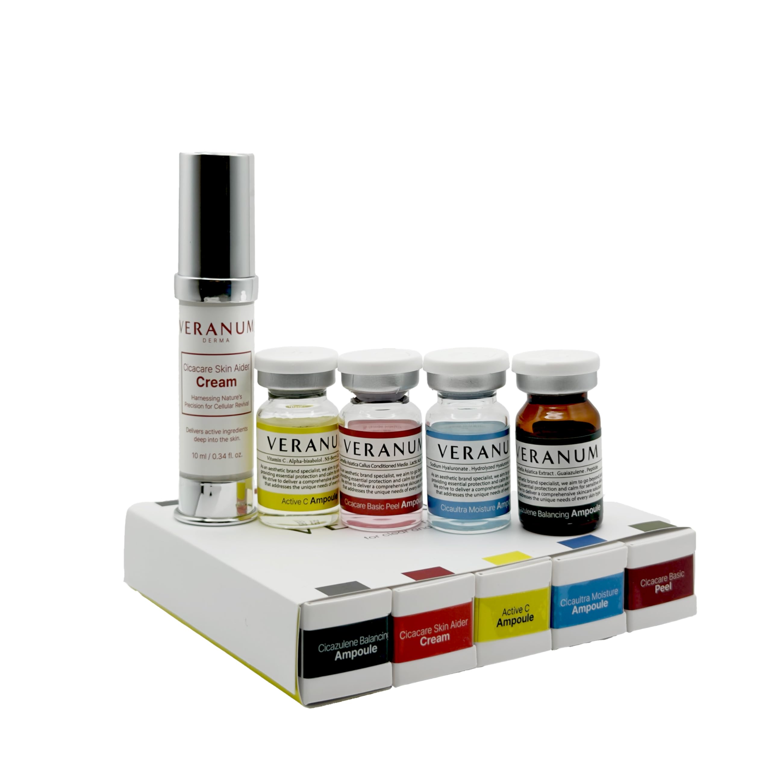 Veranum 7-Day Glow Trial Kit 5-Piece Ampoule + Aider Cream System | MicroFusion 2X Absorption | Vitamin C + Collagen + Centella EV | K-Beauty Discovery Set for Hydration & Radiance (5 Mini Sizes)