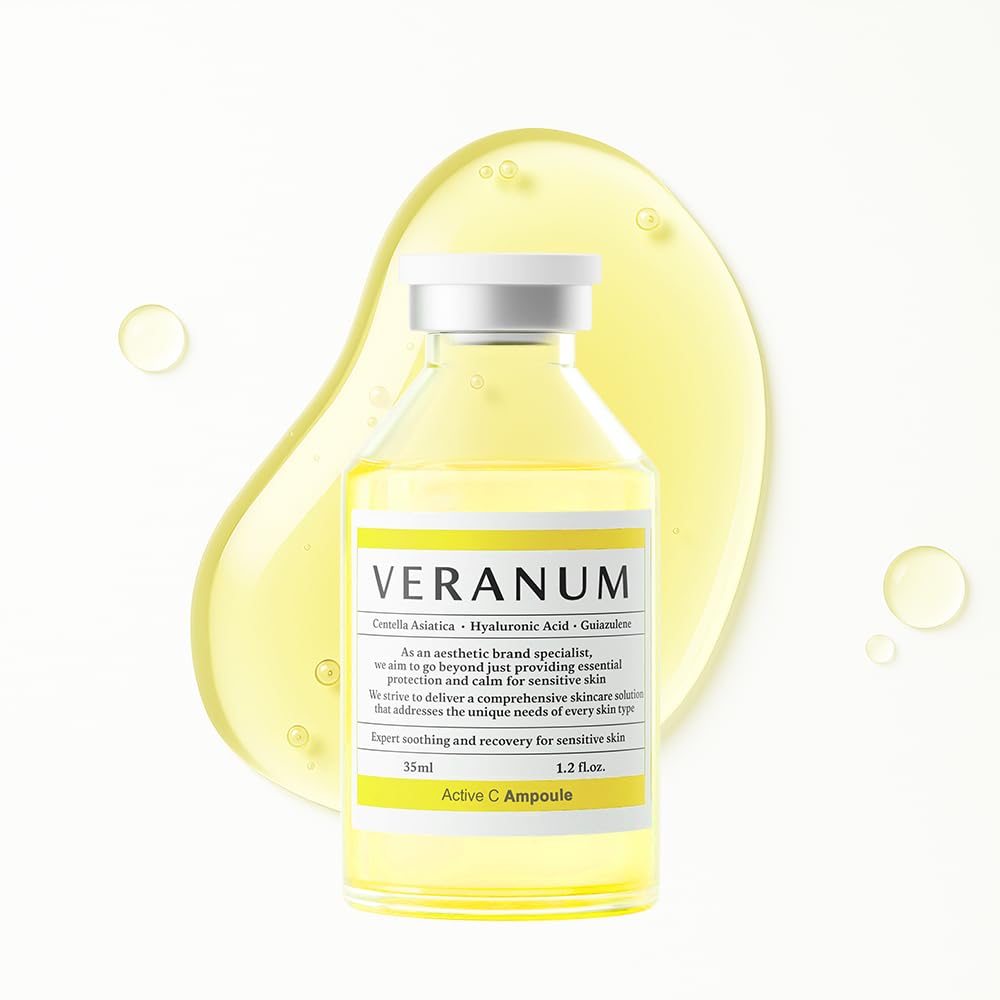 Veranum Active C Ampoule 25% Stabilized Vitamin C Brightening & Firming Serum with Triple Collagen Centella EV & Peptides Non-Irritating Korean Skincare for Radiant Even-Tone Skin 1.2 fl oz