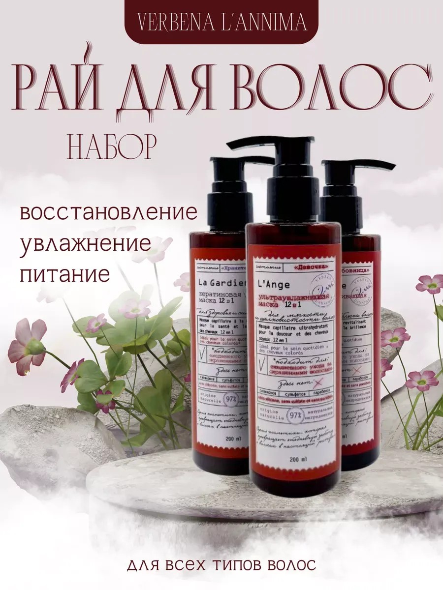 Селективный подарочный набор "3-х ступенчатая система ухода "Рай для волос" от Verbena L'annima включает: