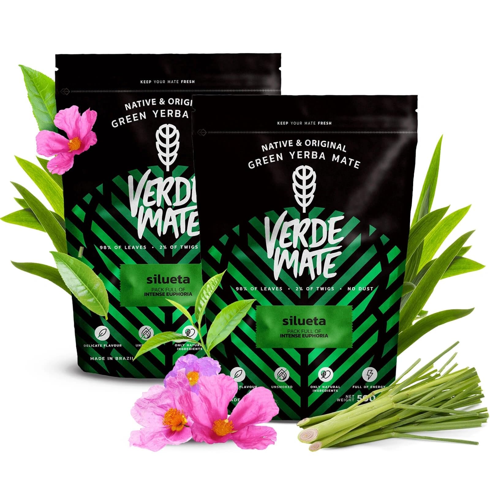 Verde Mate Green Silueta 1 kg (2×500 g) – Yerba Mate Verte du Brésil avec Thé Vert Gunpowder, Citronnelle, Menthe Pomme – Énergie Naturelle et Vitalité