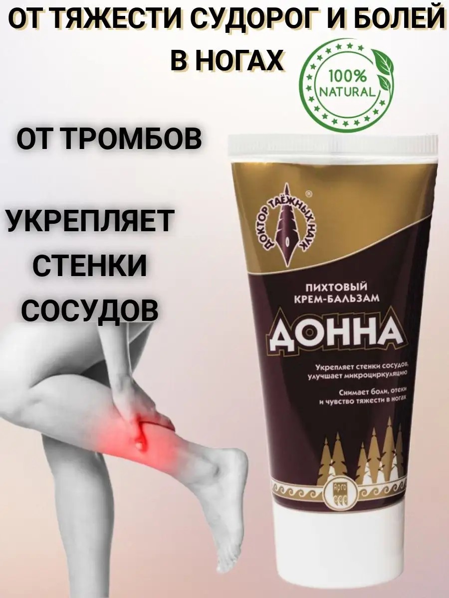 Regular and timely use of Donna's cream-balm will relieve heavy legs, cramps, and pain in the calf muscles, and improve the appearance of your skin. It will reduce the inflammatory manifestations of varicose dermatitis, skin thickening and pigmentation, and trophic ulcers, strengthen blood vessel walls, improve microcirculation, and prevent the formation of small blood clots.