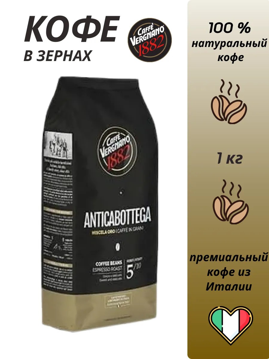 Кофе в зернах VERGNANO ANTICABOTTEGA 1000 грамм— премиум бленд средней степени обжарки. Арабика 85 %, робуста 15 %.