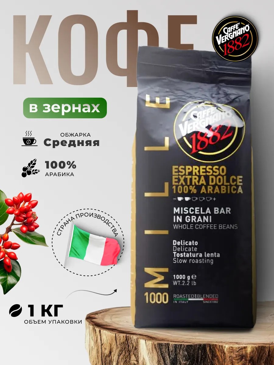 Vergnano Extra Dolce 1000 - это зерновой кофе премиального класса. Смесь лучших арабик, которая подвергается медленной обжарке по отдельности и только потом смешивается (купажируется). Это позволяет создать мягкий и одновременно очень насыщенный кофе с богатым ароматом и послевкусием, а так же непревзойдённой по плотности нежнейшей крема. Напиток с интенсивным, многогранным вкусоароматом с оттенками миндального ореха, коричневой карамели, сливок и шоколада.