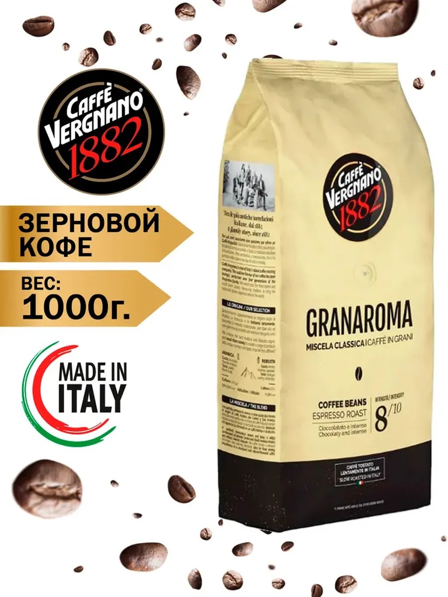 Package contentsVergnano Gran Aroma whole bean coffee 1kg, 1 pc