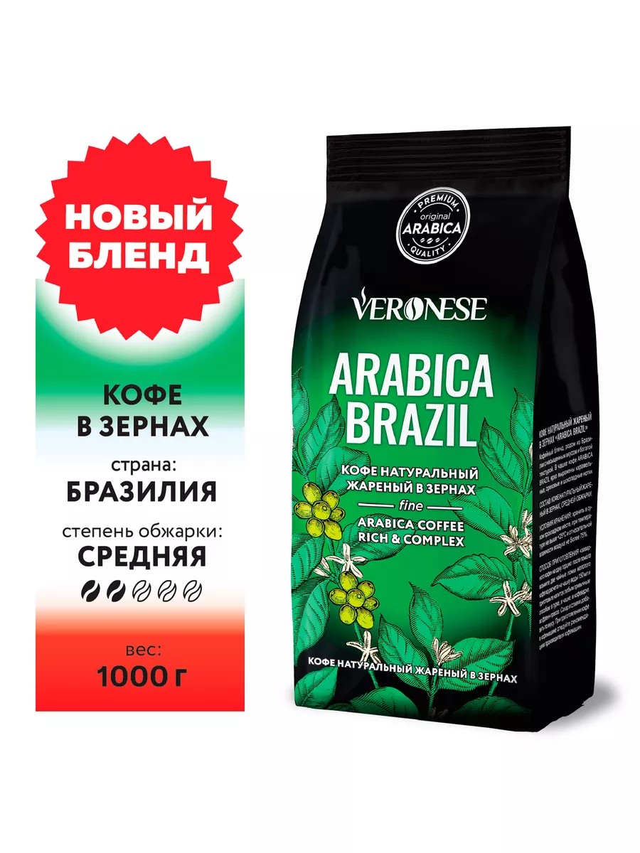 Veronese Кофе в зёрнах Arabica Brazil, 1 кг