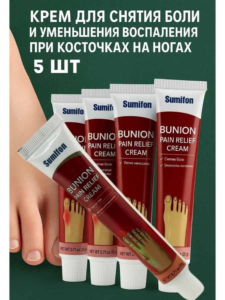 Крем для снятия боли и воспаления при шишках на ногах 20 г — это эффективное средство на основе натуральных компонентов, разработанное специально для ухода за стопами и уменьшения неприятных ощущений, связанных с вальгусной деформацией, бурситом и косточками на ногах.