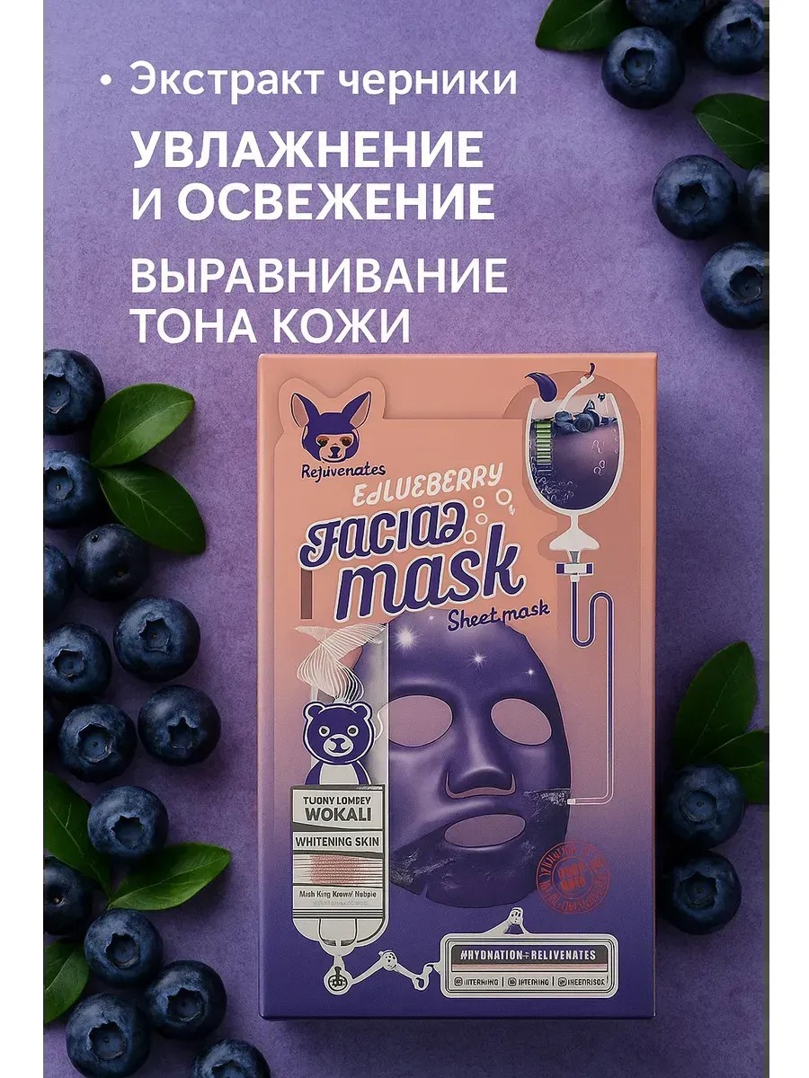 Dive into a world of intensive care with the WOKALI Blueberry Facial Mask Sheet.