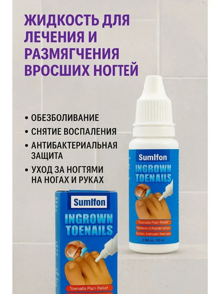 Sumlfon ingrown nail treatment helps relieve unpleasant symptoms such as redness, swelling, inflammation, and discomfort when walking.