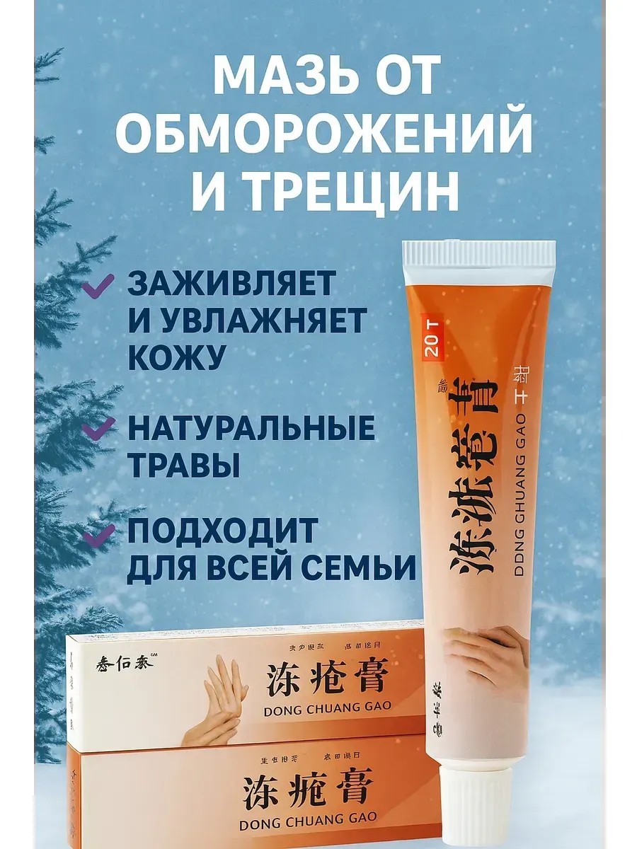 Если вы ищете надежное средство для восстановления кожи после обморожения или хотите предотвратить появление трещин и воспалений зимой, то мазь Dong Chuang Gao – это оптимальный выбор. Она сочетает в себе силу традиционной китайской медицины и современные технологии, обеспечивая быстрый результат и мягкий уход.