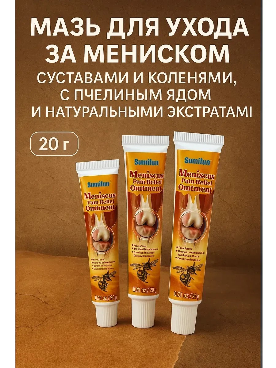 Крем-мазь для суставовс пчелиным ядом- это натуральное средство для комплексного ухода за коленными суставами, мениском и опорно-двигательным аппаратом. Разработан на основе пчелиного яда, эфирных масел и экстрактов лекарственных растений, он помогает снизить боль, уменьшить воспаление и восстановить подвижность суставов. Подходит для ежедневного применения при хронических и острых состояниях, связанных с мениском, коленями и другими суставами.