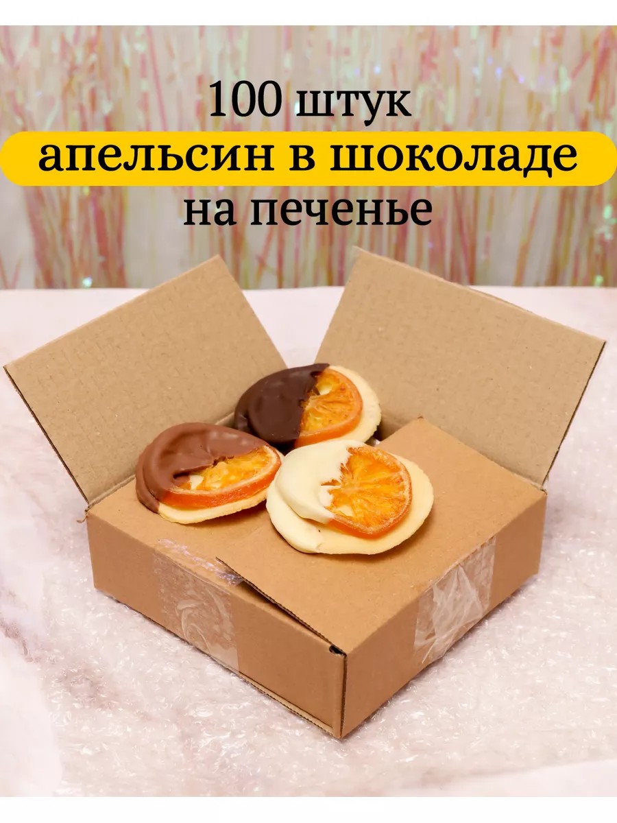 | Комплектация | 100 апельсинов в шоколаде на печенье; 3 вида шоколадного покрытия |