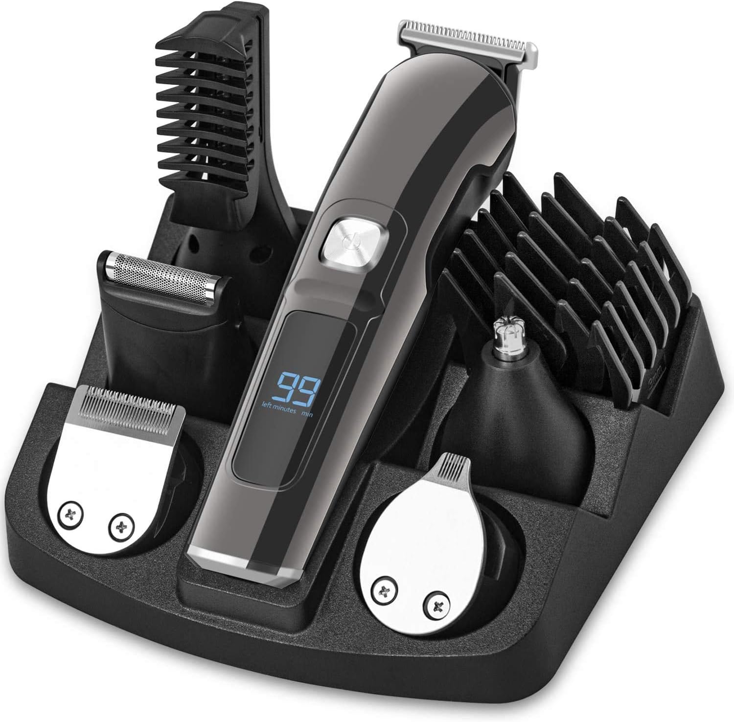 Vesstt Beard Trimmer Mens Hair Clippers 11-in-1 Cordless Face Nose Body Haircut Kit Electric Rechargeable Waterproof Shaver with LED Display for Kids Adults - Black
