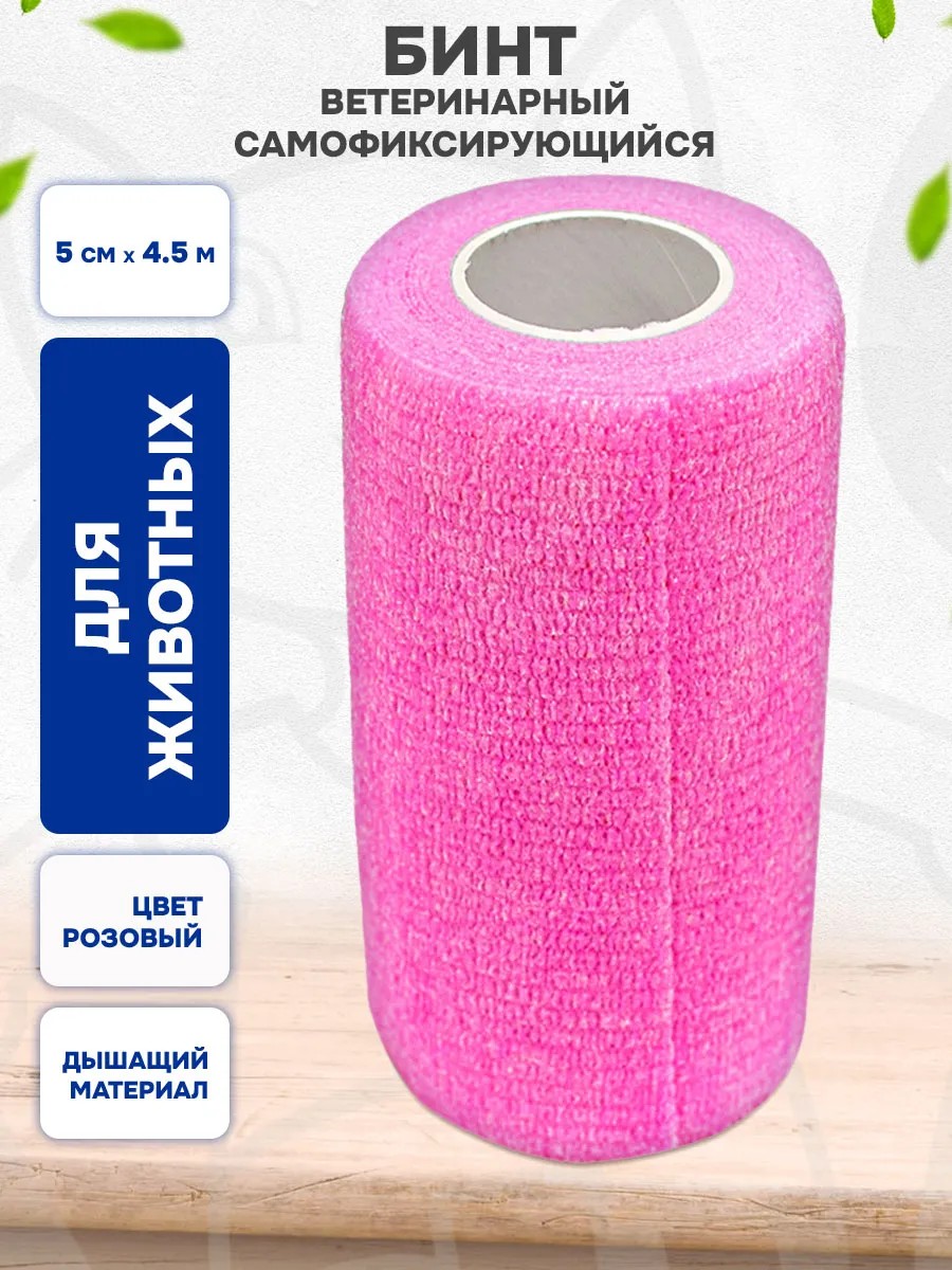 КомплектацияБинт ветеринарный универсальный для собак кошек хорьков грызунов всех пород розовый 5см х 4,5м - 1шт