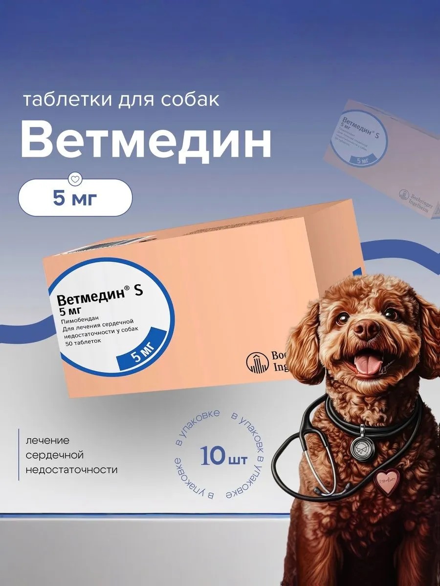 Ветмедин 5 мг - это ветеринарный препарат, предназначенный для лечения сердечной недостаточности у кошек и собак весом от 5 до 10 кг. Ветмедин 5 мг содержит пимобендан, который помогает улучшить сократительную способность сердца, тем самым облегчая работу сердечной мышцы. Препарат выпускается в форме таблеток по 10 штук в упаковке. Ветмедин 5 мг не содержит ГМО и отпускается без рецепта. Важно хранить Ветмедин 5 мг в сухом месте, недоступном для детей. Перед применением Ветмедина 5 мг, проконсультируйтесь с ветеринарным врачом, чтобы убедиться в отсутствии индивидуальной непереносимости у вашего питомца. Ветмедин 5 мг - надежный помощник в борьбе с сердечной недостаточностью у ваших любимцев.