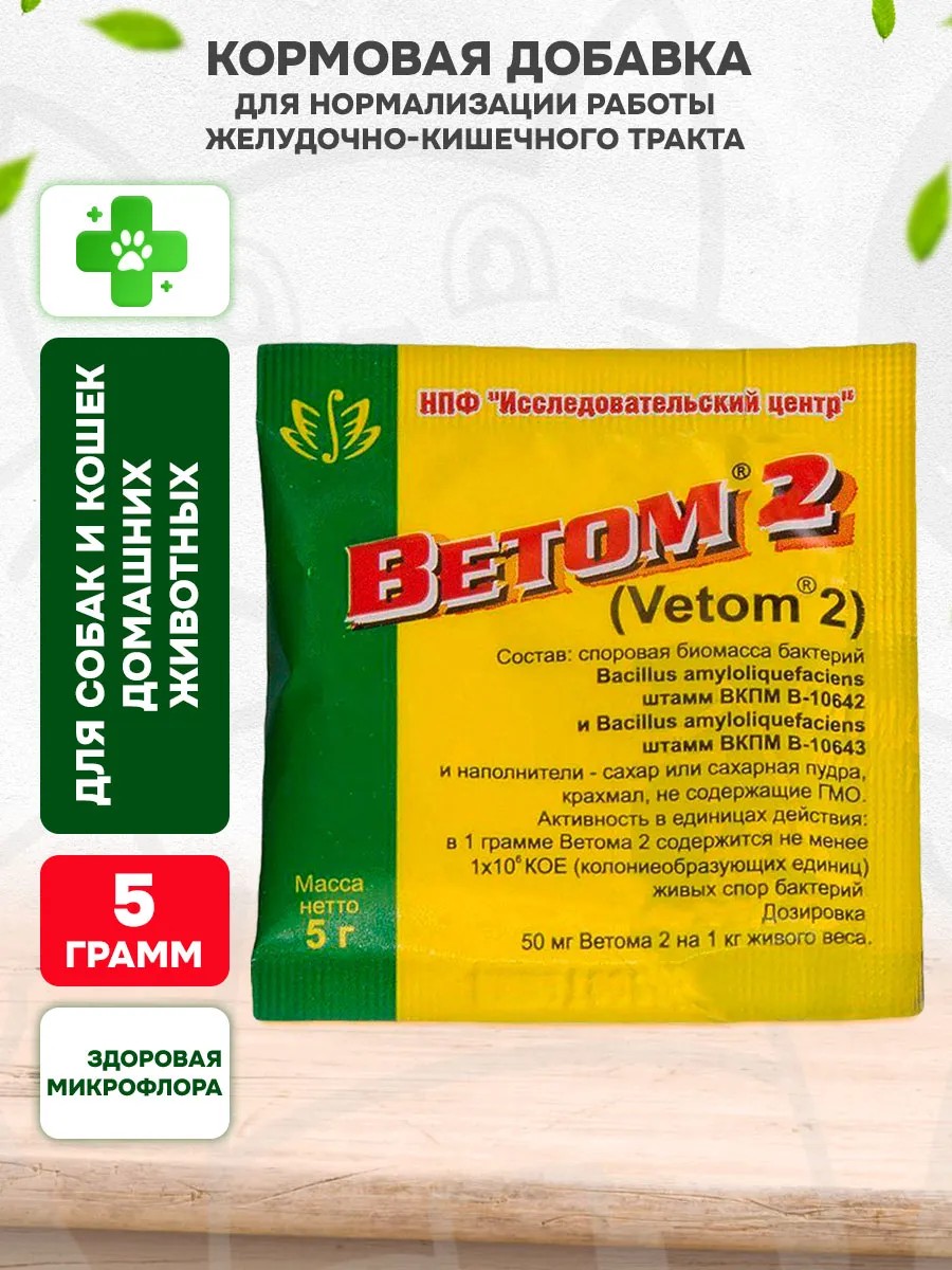 Ветом 2 пробиотик для домашних и сельскохозяйственных животных. Профилактика и лечение желудочно-кишечных заболеваний с синдромом диареи и повышение естественной резистентности организма домашних, сельскохозяйственных, диких животных, в т. ч. пушных зверей и птиц. Для стимуляции роста и развития молодняка сельскохозяйственных животных и получения дополнительных привесов.