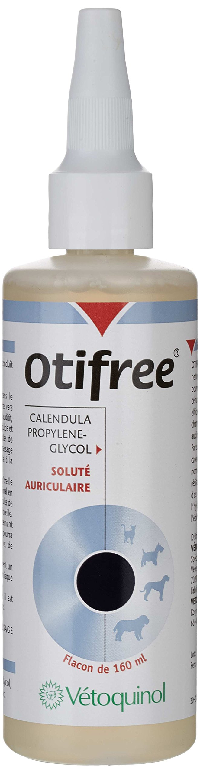 The combination of these components makes Otifree a gentle, moisturizing, and cleansing solution for dogs and cats, safe for use on ears with superficial wounds and abrasions. Its softening properties help soften and moisturize the epidermis to make it more resistant. Calendula is a surface antiseptic and has a healing action. Propylene glycol, thanks to its ceruminolytic, keratolytic, emollient, and moisturizing properties, breaks down and eliminates earwax deposits, debris, and secretions. Otifree is an ear cleanser for dogs and cats based on propylene glycol and calendula.L'association de ces composants fait d'Otifree une solution nettoyante, hydratante et douce pour les chiens et les chats, sans aucun danger sur des oreilles présentant des plaies superficielles et des écorchures. Ses propriétés adoucissantes permettent d'assouplir et d'hydrater l'épiderme afin de le rendre plus résistant. Le calendula est un antiseptique de surface et possède une action cicatrisante. Le propylène-glycol, grâce à ses propriétés céruminolytiques, kératolytiques, émollientes et humidifiantes, désagrège et élimine les amas de cérumen, les débris et les sécrétions. Otifree est un nettoyant auriculaire pour chien et chat à base de propylèneglycol et de calendula.