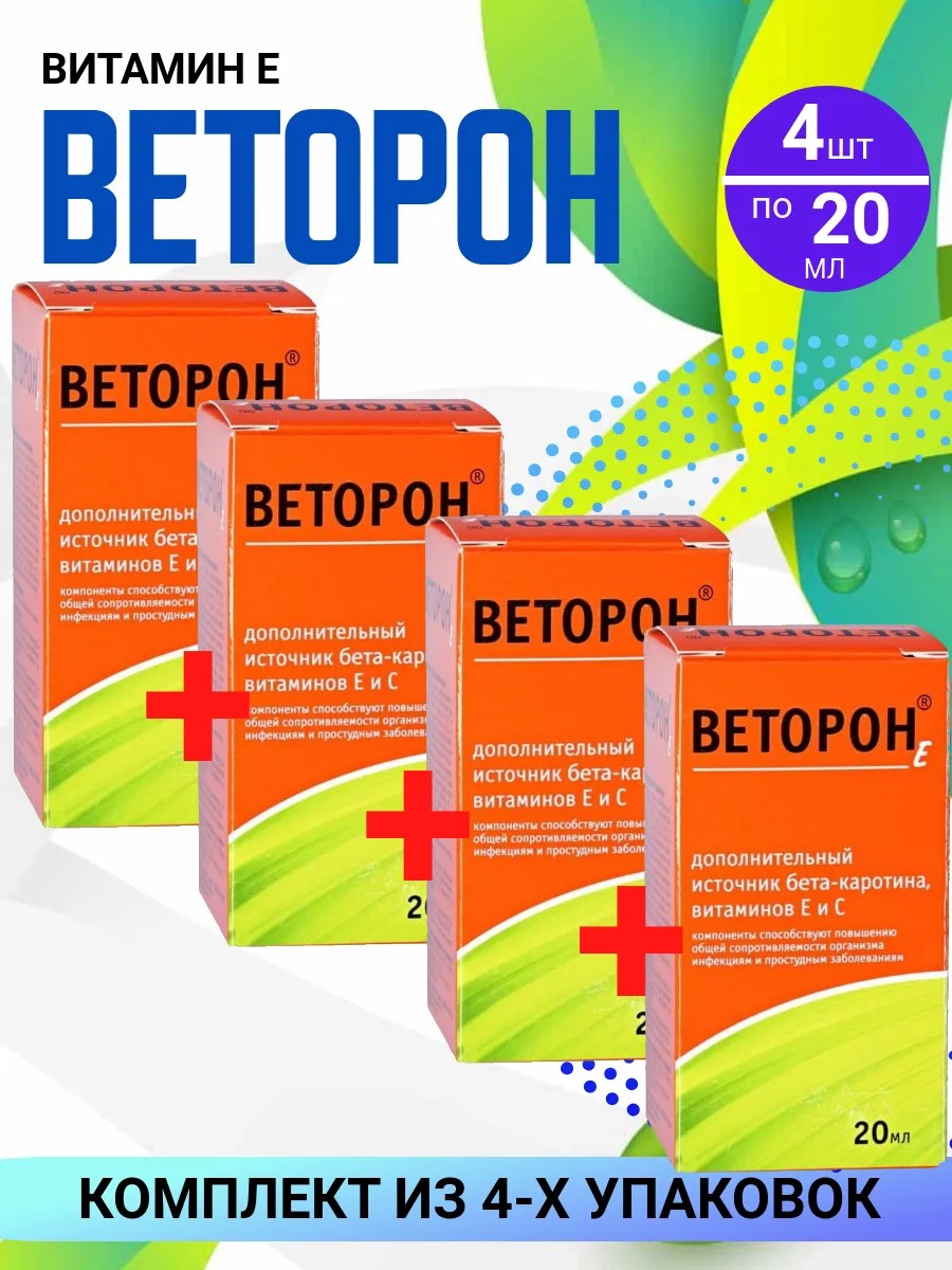 Vetoron Веторон витамин Е для взрослых, 4 флакона по 20 мл, Комплект