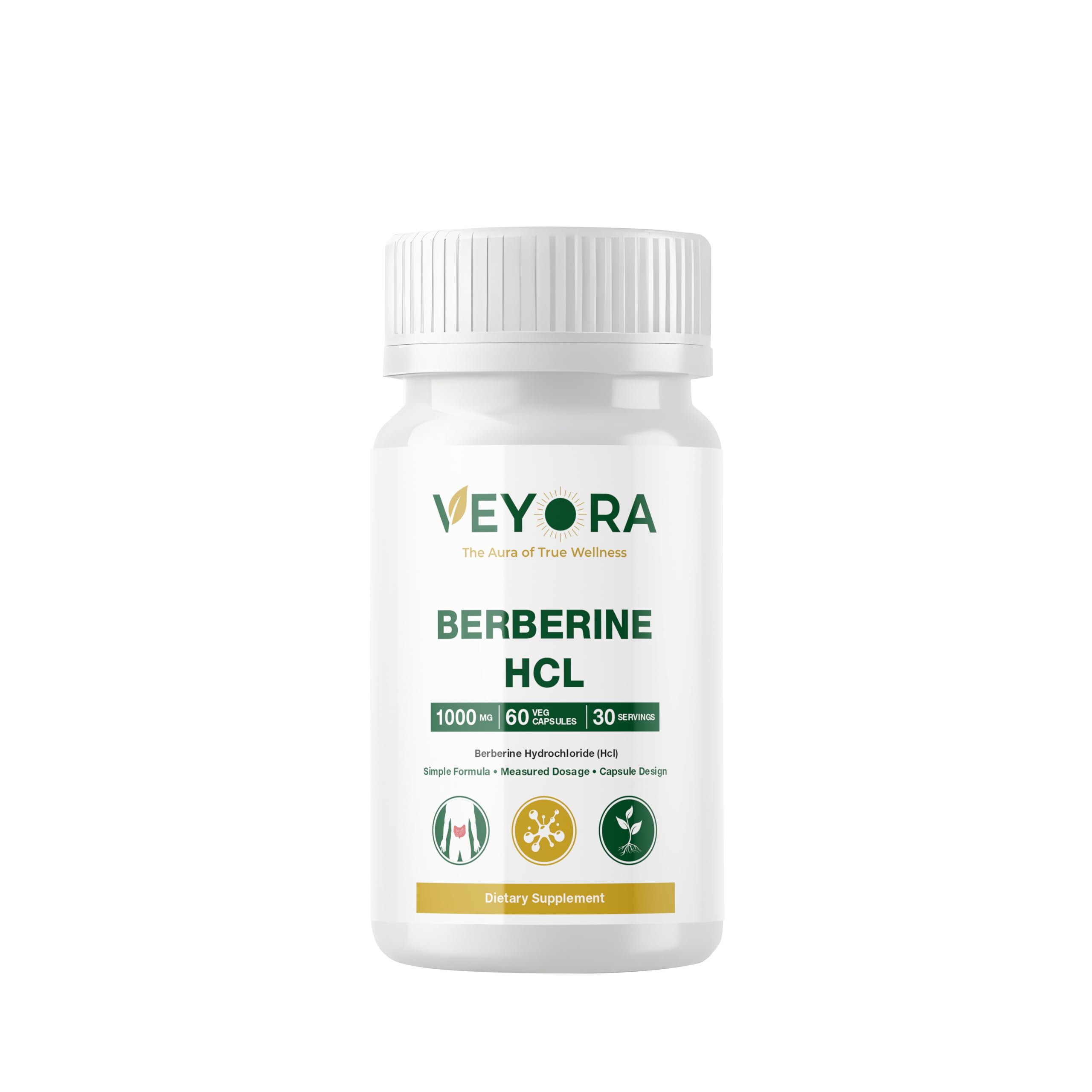 VEYORA Berberine HCl 1000 mg | 60 Vegan Capsules | Pure Berberine Hydrochloride | Plant-Based Clean Label | Non-GMO | Gluten-Free