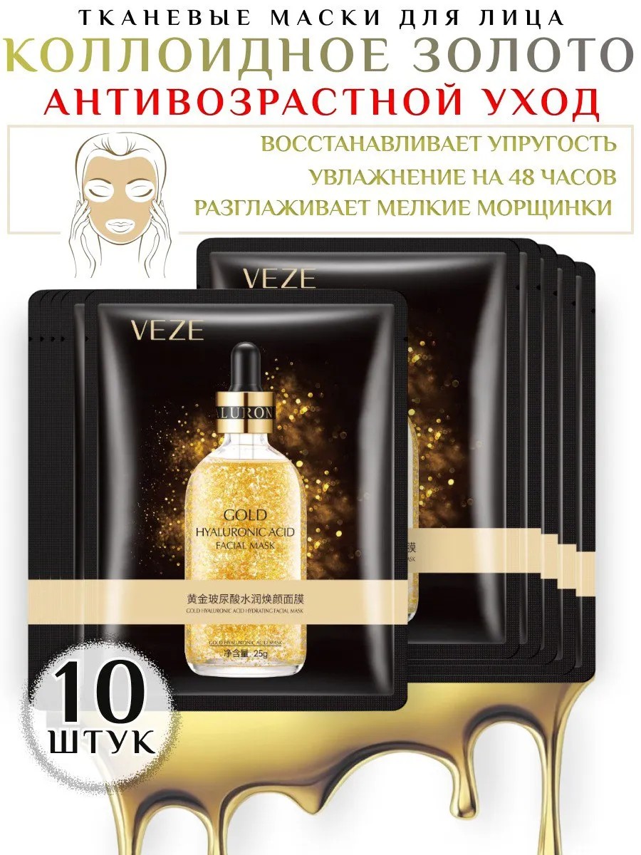 Маски для лица коллоидное золото с гиалуроновой кислотой