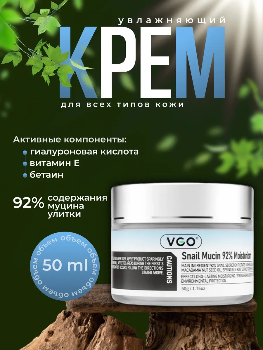 VGO Увлажняющий крем с муцином улитки 92%, 50 г
