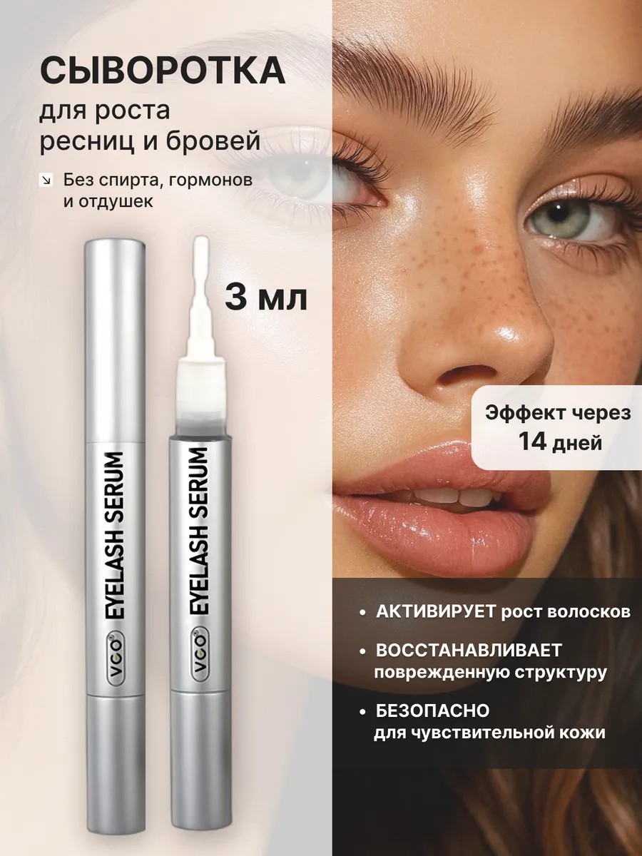 Сыворотка для ресниц и бровей VGO подходит для ежедневного ухода. Результат проявляются всего за 14 дней, при этом за два месяца сыворотка придает ресницам максимальный объем и длину, а бровям - густоту и яркость. Активная формула на основе глицерина, биотина, протеина белого люпина, гиалуроната натрия и пептидов стимулирует рост, питает и укрепляет корни.