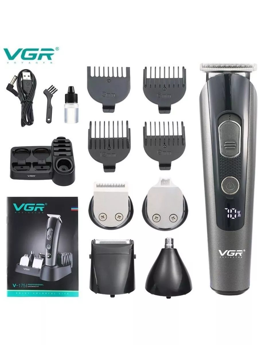 Машинка для стрижки волос VGR V-175, бороды, усов имеет ЖК дисплей, для удобного контроля.Триммер имеет 5 различных режущих головок и 4 ограничительных гребня для стрижки разных волос на лице.Триммер доступен для перезаряжаемого использования.Можно изменять длину гребешка, чтобы регулировать длину срезаемых волос.Лезвия созданы из высокопрочной нержавеющей стали. Режущая головка из сплава с острым углом, сохраняет режущую головку острой и предотвращает раздражение и поражения кожиМашинка имеет низкий уровень шума и высокую мощность работыТриммер заряжается 2 часа и хватает до 3х часов активной работы.Машинка имеет высокую степень влагозащиты IPX7, благодаря чему ее можно мыть под водой.Подходит для взрослых, пожилых и детей. Мужчинам и женщинам