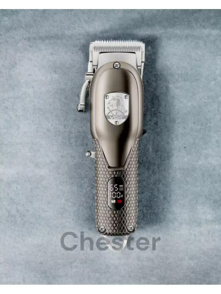 The VGR professional hair clipper features a lever control. The power and blade extension controls are located on the left side of the body. These allow for easy operation without changing your grip. The blade extension lever has four positions, allowing for cuts from 0.8 to 2 mm long. Six additional attachments increase the cutting length to 12 mm. The clipper is equipped with a powerful motor operating at 6,500 rpm, which is essential when working with thick and dense hair. The front panel features an LED display with important information, including remaining battery percentage, motor speed, power connection, and lubrication requirements. The lithium battery provides up to 250 minutes of battery-powered operation. This brand is for search purposes only!!!