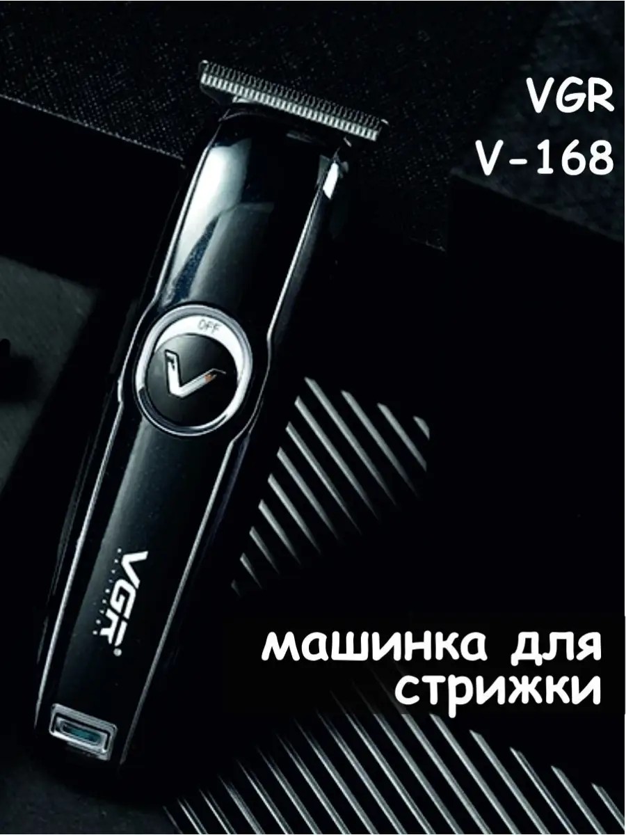 The VGR V-168 hair clipper and trimmer is rechargeable, portable, and waterproof. It's designed to remove unwanted facial hair, as well as trim the back of the head, sideburns, and beard. The trimmer's special design prevents the blades from touching the skin. The shaving head is non-irritating. The device is easy to clean with a special brush. The VGR V-168 hair clipper has a durable design with an ergonomic handle. The VGR V-168 hair clipper trimmer is a great gift for a husband, dad, friend, colleague, brother, for February 23rd, birthday, or just because. General characteristics: Blade material: stainless steel Power: rechargeable battery, USB port Power: 5 W Charging time: 2 hours Working time: 100 minutes Lithium-ion battery: 600 mAh Body material: plastic Color: black Package includes: clipper Cleaning brush USB cable 3 attachments Blade cover Oil.