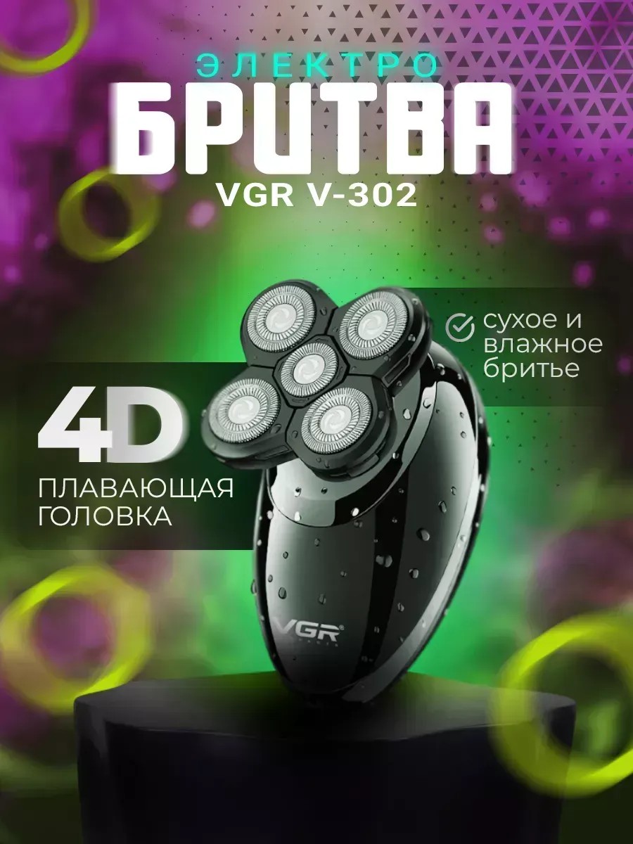 Водонепроницаемая беспроводная электробритва снабжена пятью плавающими роторными головками-лезвиями, которые идеально следуют за контуром лица и тела, сбривая самые короткие волосы и щетину, как при сухом, так и при влажном бритье. Бритва подходит для мужчин и женщин. Беспроводная электробритва с одинаковым успехом подходит и для сухого бритья, например в поездке или при нехватке времени, и для влажного в привычном комфорте ванной комнаты с горячей водой и кремом или пеной. Плавающая головка свободно обрабатывает крупные изгибы лица для наилучшего контакта с кожей. Заряда аккумулятора электробритвы VGR V - 302 хватает на 60 мин использования. Технические характеристики: Тип: роторная Бритье: влажное/сухое Съемный триммер Бритвенных головок: 5 Плавающая головка Материал лезвий: нержавеющая сталь+ ABS Источник питания: аккумулятор Время работы: 60 мин Время зарядки: до 8ч. Бритва отлично подойдет не только мужчинам, но и женщинам.