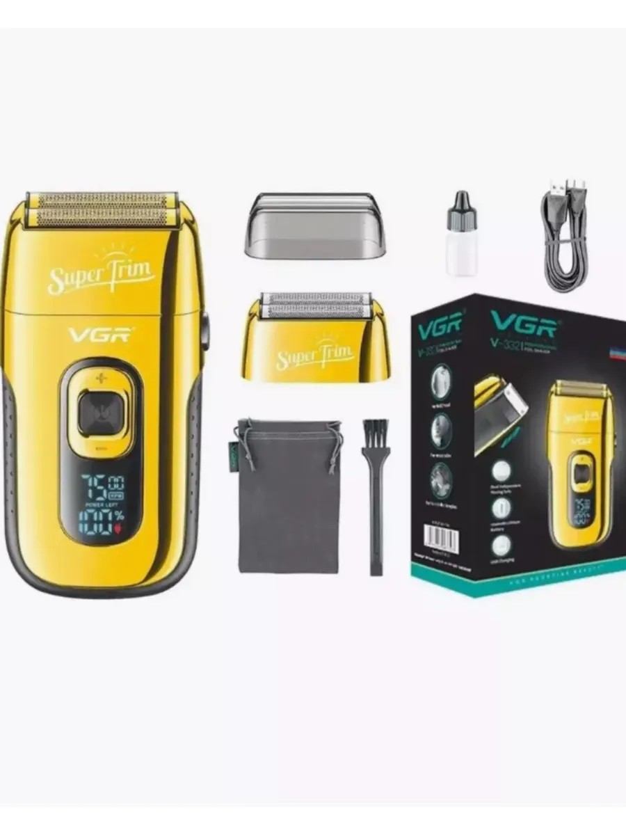 Электробритва с триммером 2 в 1 VGR V-332 Беспроводная Мужская электрическая бритва для лица — это идеальное решение для тех, кто уделяет особое внимание своему внешнему виду. Каждый мужчина знает, насколько важен правильный выбор бритвы, и наш шейвер обладает всеми необходимыми функциями, чтобы обеспечить максимально гладкий и красивый результат. Портативный аккумуляторный шейвер обладает двойным лезвием из нержавеющей стали, которое гарантируют более эффективное бритье и исключают возможность порезов и минимизирует раздражения кожи, препятствует появлению вросших волос и не доставляет дискомфорта при использовании. Ножи шейвера, в отличие от ножей триммеров, срезают волосы в непосредственной близости к коже. Электробритва подходит для безупречно гладкого бритья, выведения чётких линий окантовок, для мелких поправок формы бороды. Используют шейверы в конце стрижки или бритья, для доведения результата до идеальной гладкости. Бритье станет быстрым и комфортным процессом, который займет буквально несколько минут. Машинка для бритья, это надежный инструмент, который не только обеспечивает идеальный результат, но и прост в уходе, быстро и легко очищается после использования, достаточно просто промыть лезвие под струей проточной воды и высушить естественным путем. Мужская электрическая бритва идеально подходит для ежедневного использования и , благодаря компактному размеру, легко поместится в вашу дорожную сумку или чемодан, в комплекте так же предусмотрен мягкий мешочек для транспортировки и защитный колпачок. Она станет вашим незаменимым помощником в поездках и путешествиях, так что вы всегда будете выглядеть на высоте. Высокая автономность позволяет использовать бритву непрерывно в течение 150 минут. При помощи LED дисплея можно отслеживать уровень заряда аккумулятора, а также скорость вращения лезвий. Если вам необходимо сбрить длиную бороду, то сначала нужно сбрить ее выдвижным триммером до самой минимальной длины и после этого применять шейвер.