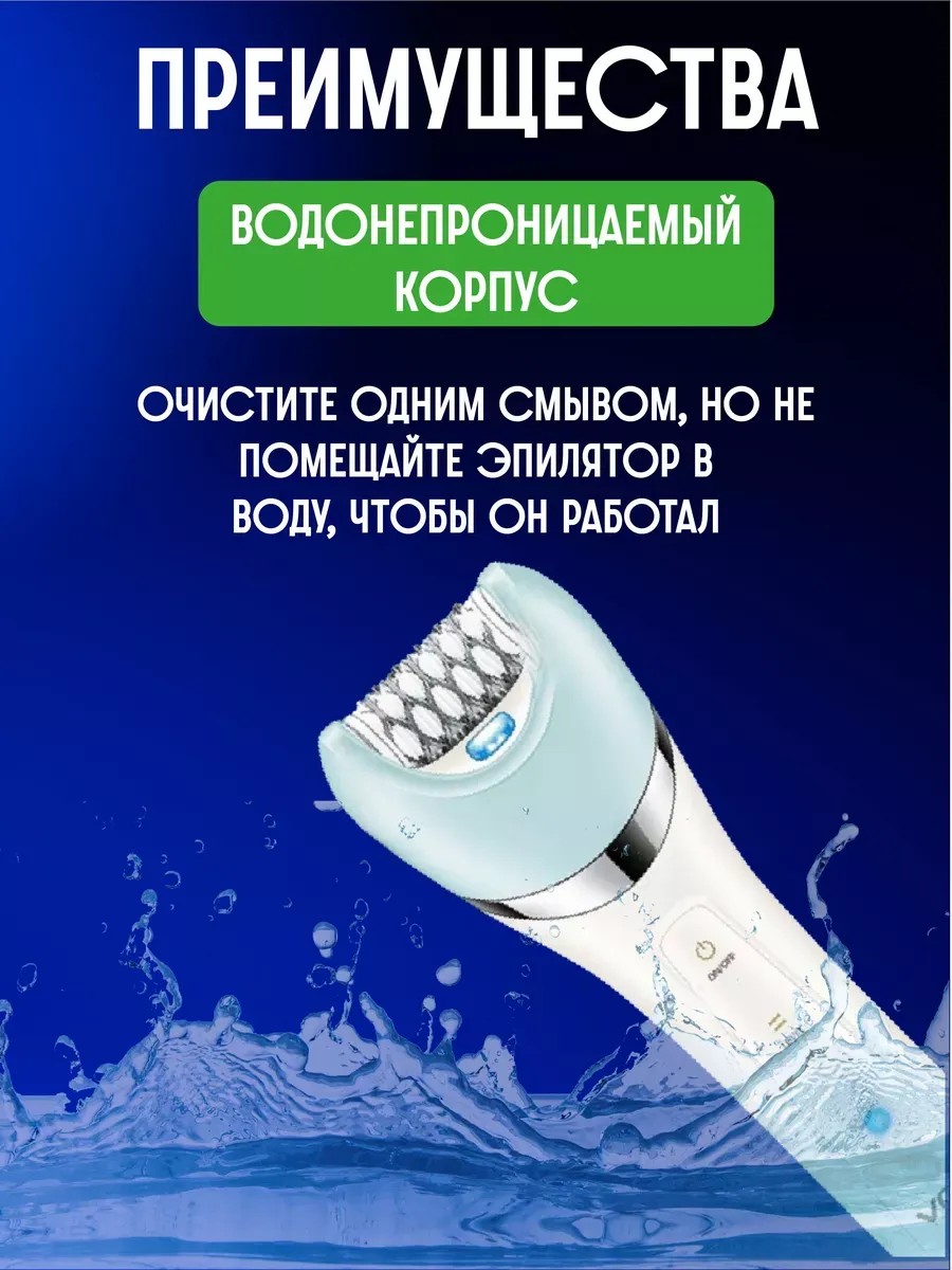 | Доп. опции эпилятора | быстрая зарядка; водонепроницаемый корпус; индикатор зарядки |