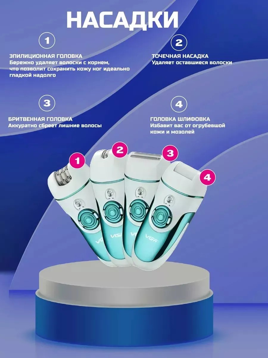 Откройте для себя идеальное решение для ухода за кожей с многофункциональным эпилятором 4 в 1. Этот стильный и эффективный прибор станет вашим незаменимым помощником в борьбе с нежелательными волосами. Он идеально подходит для удаления волос в различных зонах: бикини, подмышки, лицо и ноги, что делает его универсальным инструментом для домашнего использования. В комплект входят специальные насадки для эпиляции, бритья, тримминга и даже ухода за пятками, что позволяет вам легко адаптировать процедуру к вашим индивидуальным потребностям.