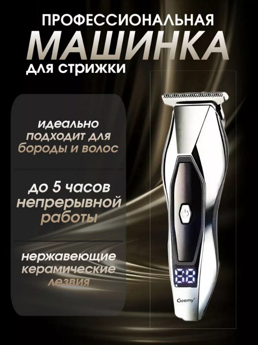 Машинка для стрижки волос Geemy-6613 легкая и компактная, почти не ощущается в руке. Заряжается очень быстро и зарядки хватает приблизительно на два часа работы. Бесшумная. Высококачественная сталь позволяет выполнять точные работы максимально близко к коже. Рекомендуется периодически смазывать лезвия для качественной работы машинки. После нанесения масла необходимо, чтобы машинка поработала несколько секунд для равномерного распределения смазки по поверхности.**Характеристики:** Тип Триммер, Триммер для бороды и усовОбласть применения Голова, Кончики волос, Волосы, Борода, УсыМаксимальная длина стрижки, мм 10Минимальная длина стрижки, мм 0.1Питание От аккумулятора, От сетиВремя работы от аккумулятора, мин 120Количество насадок 4Материал/покрытие лезвий Нержавеющая стальБренд GEEMYВремя зарядки аккумулятора, ч 1Способ регулировки длины С помощью насадок и регулятора**Комплектация**машинка насадки щетка масло провод для зарядки.