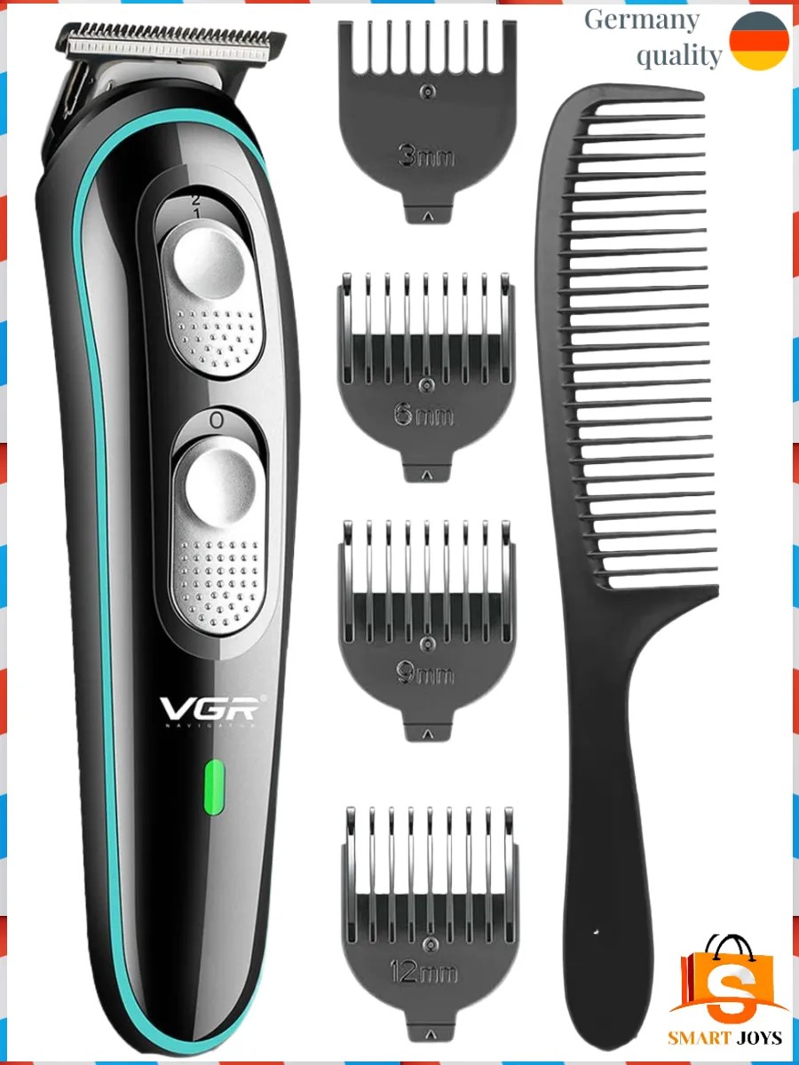 Машинка для стрижки и триммер в одном корпусе заменит вам поход в парикмахерскую и барбершоп. Машинка сделана из качественных материалов Т-образное лезвие шириной 37 мм из высокопрочной закаленной нержавеющей стали позволяет выполнять точные работы максимально близко к коже. Быстросъемный ножевой блок гарантирует длительный срок службы изделия. Вы с легкостью сможете очистить или заменить нож при необходимости. С помощью одной кнопки можно регулировать длину срезаемых волос. Машинка оснащена инновационным встроенным Li-Ion аккумулятором емкостью 500 мАч. Триммер заряжается очень быстро за 90 минут и зарядки хватает приблизительно на 2 часа активной автономной работы от аккумулятора, что позволяет комфортно перемещаться во время работы, не сковывая и не ограничивая движения. Заряжайте машинку от любого USB разъема не менее 1 ампера. В комплекте имеются 4 насадки 3 мм /6 мм /9 мм/ 12 мм для идеальной стрижки. Подойдёт для стрижки бороды, усов, волос, окантовки, также отличная альтернатива для деликатных мест. Профессиональная машинка для стрижки волос VGR V-055 отличается своей легкостью и компактностью, практически не ощущается в руке. Особенности машинки: - Светодиодный индикатор оповещает о о полностью заряженном аккумуляторе, меняя цвет с красного на зеленый. Выключатель нажимного типа - прост и удобен в использовании. - Машинка для стрижки имеет высокую степень влагозащиты IPX7, благодаря чему ее можно мыть под водой. - Низкий уровень шума при работе мотора с высокой скоростью вращения и мощности 5 Вт. Бреет четко и чисто, не вызывая раздражений на коже.